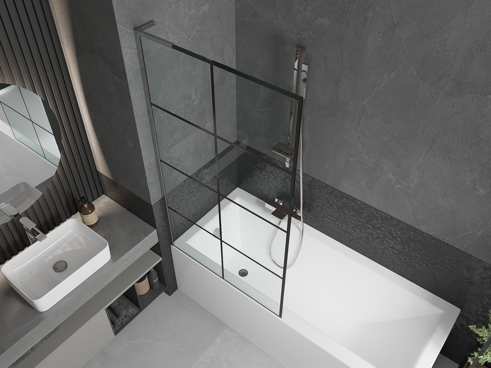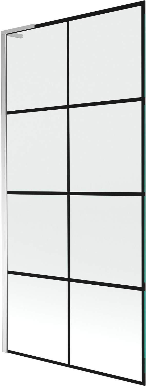Mexen Next L параван за вана 1-крилен 90 x 150 см, черна решетка, хром - 895-090-000-03-77-01