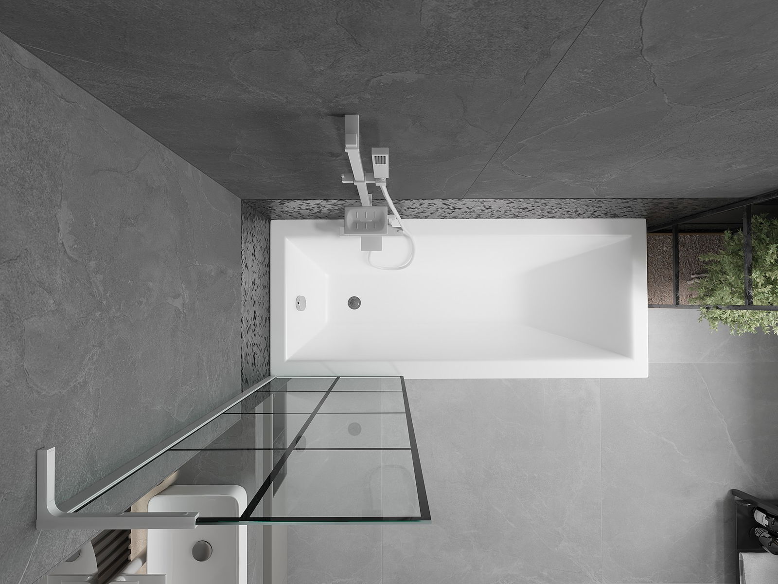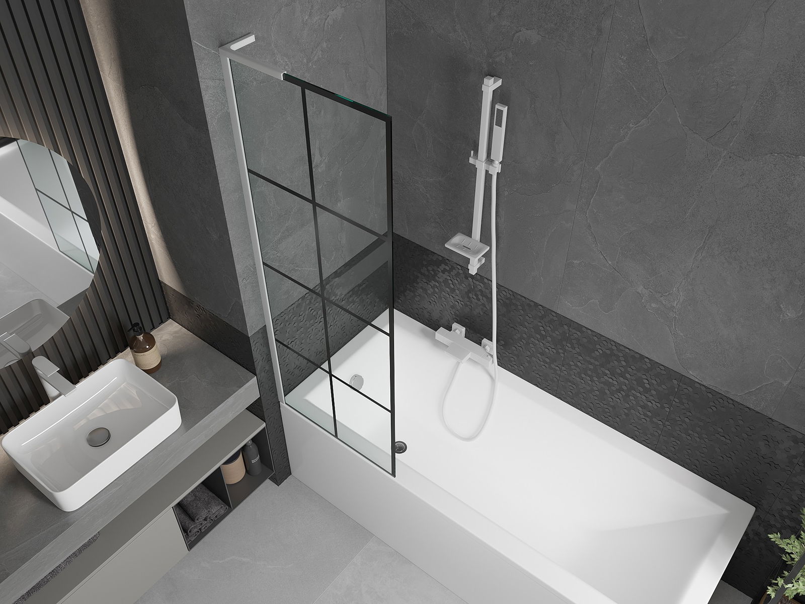 Mexen Next L параван за вана с 1 крило 60 х 150 см, черна решетка, бял - 895-060-000-03-77-20