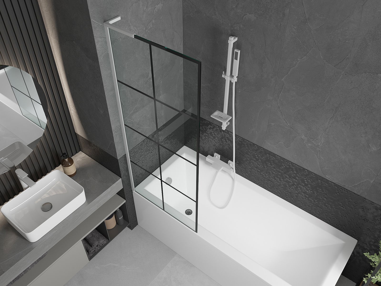 Mexen Next L Параван за вана с 1 крило 70 x 150 см, черна решетка, бял - 895-070-000-03-77-20