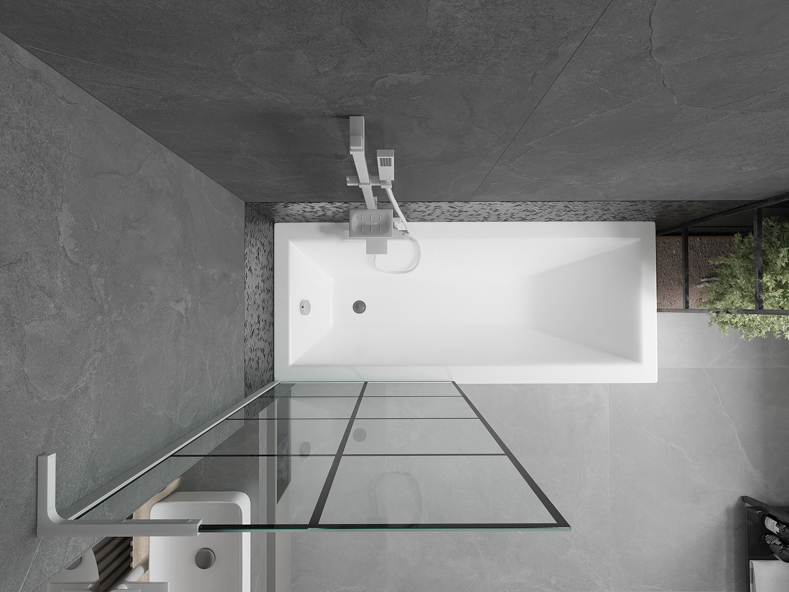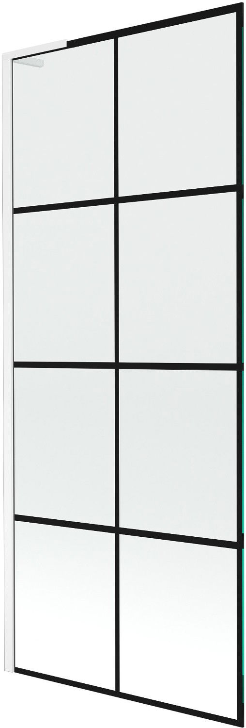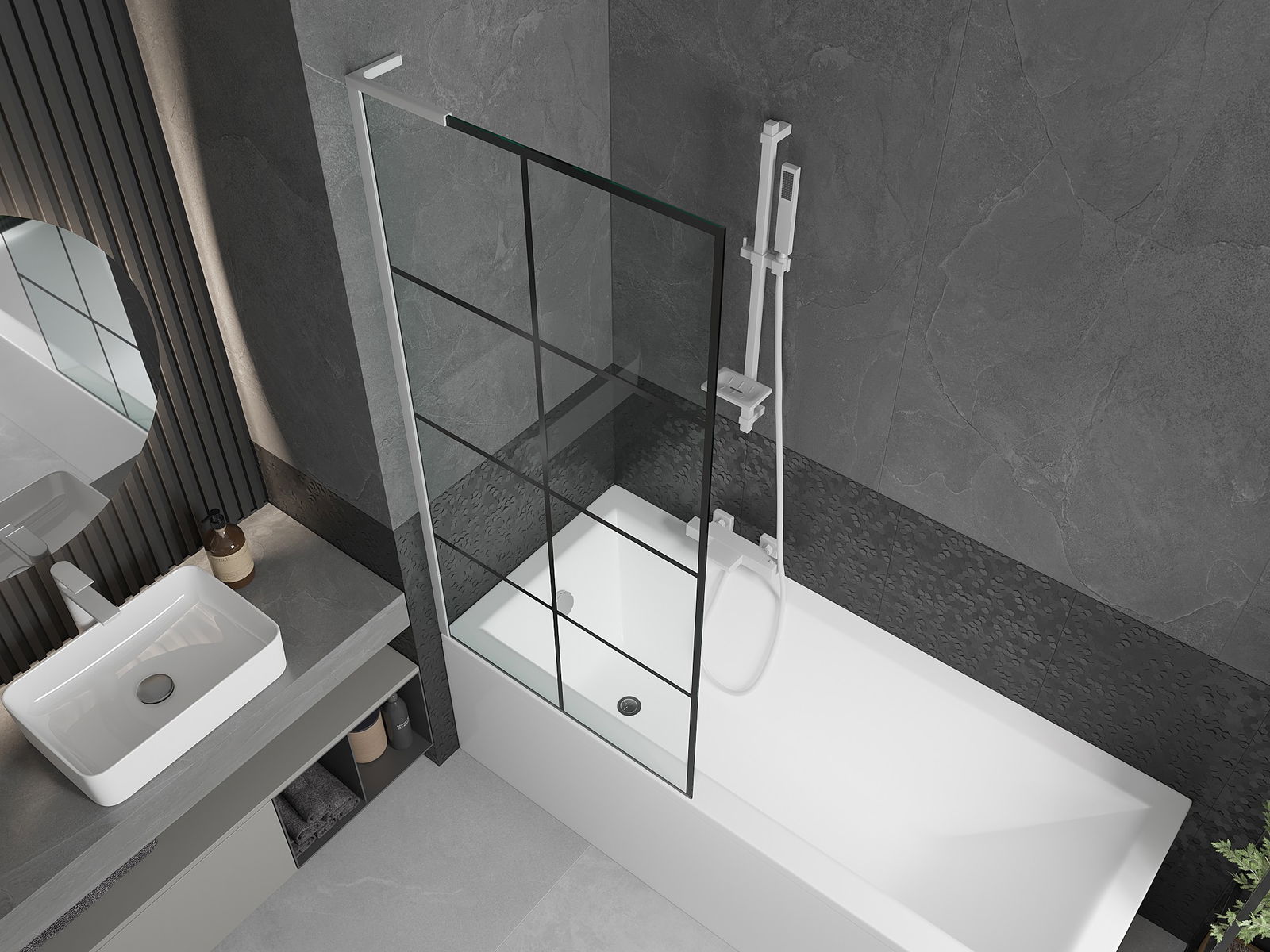 Mexen Next L параван за вана, 1-крилен, 80 x 150 см, черна решетка, бял - 895-080-000-03-77-20