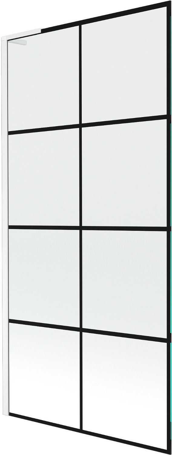 Mexen Next L параван за вана 1-крилен 90 x 150 см, черна решетка, бял - 895-090-000-03-77-20