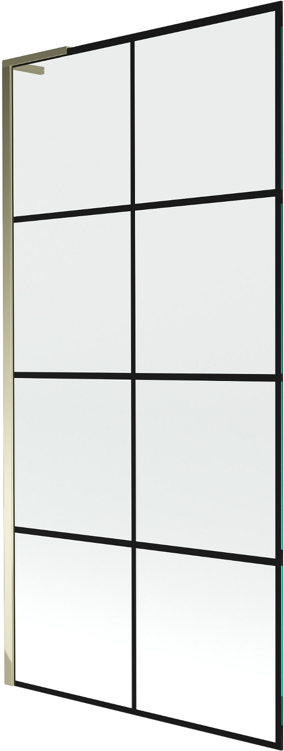 Mexen Next L параван за вана с 1 крило 90 x 150 см, черна решетка, златист - 895-090-000-03-77-50