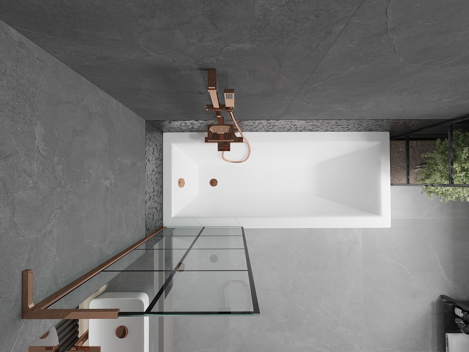 Mexen Next L параван за вана, 1-крилен, 60 x 150 см, черна решетка, розово злато - 895-060-000-03-77-60