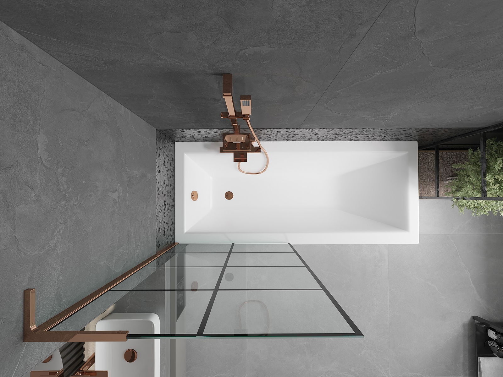 Mexen Next L параван за вана с едно крило 80 x 150 см, черна решетка, розово злато - 895-080-000-03-77-60
