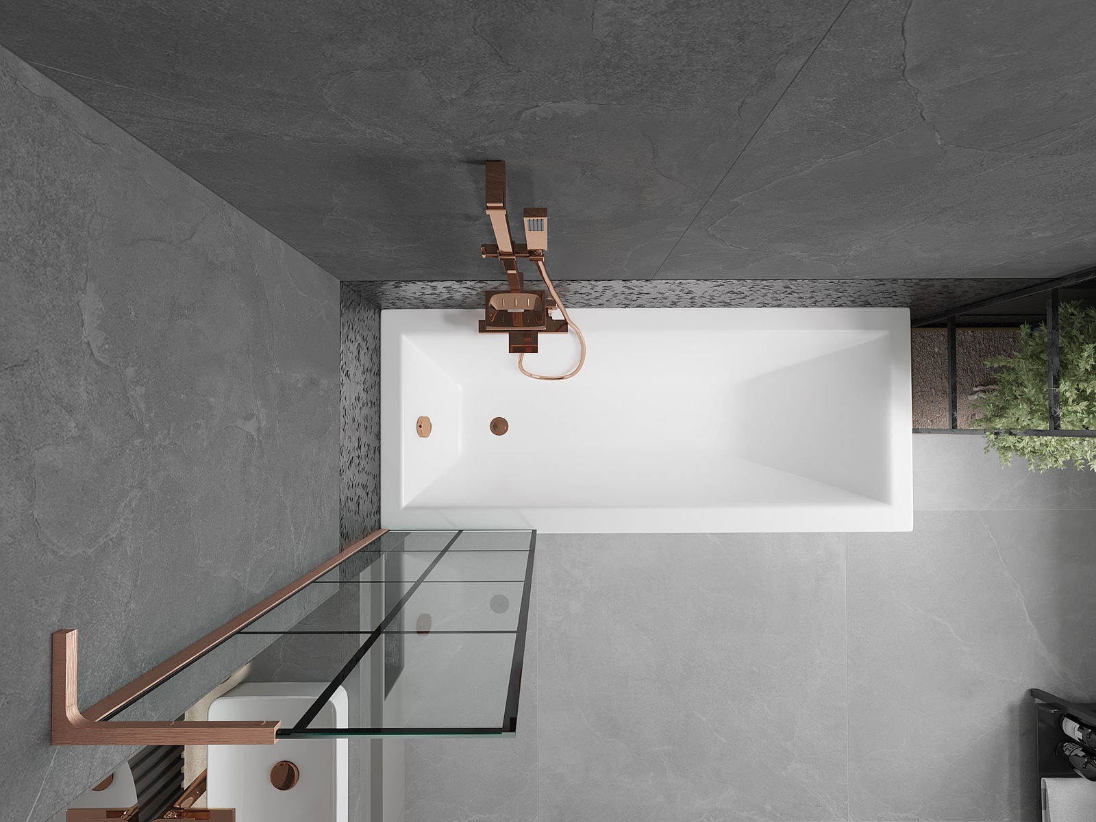 Mexen Next L параван за вана 1-крилов 50 x 150 см, черна решетка, матирана мед - 895-050-000-03-77-65