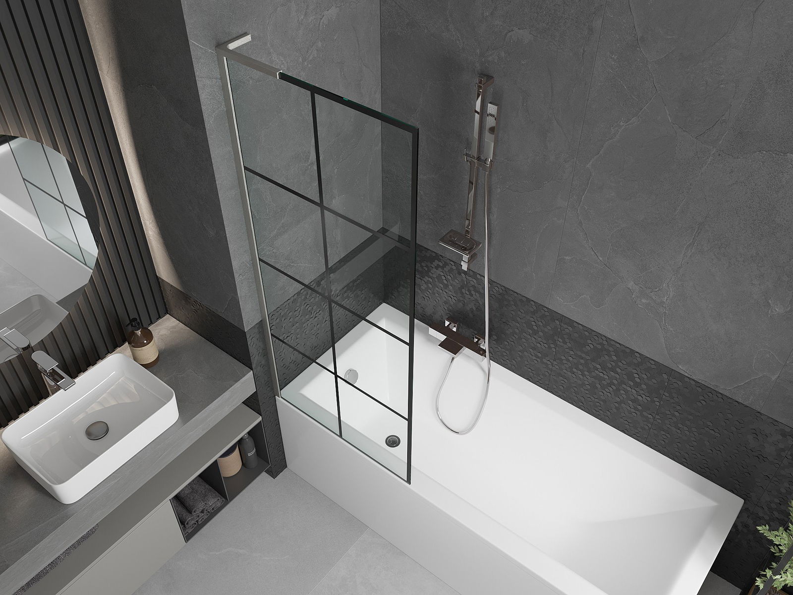 Mexen Next L параван за вана 1-крилен 70 x 150 см, черна решетка, четкан никел - 895-070-000-03-77-97