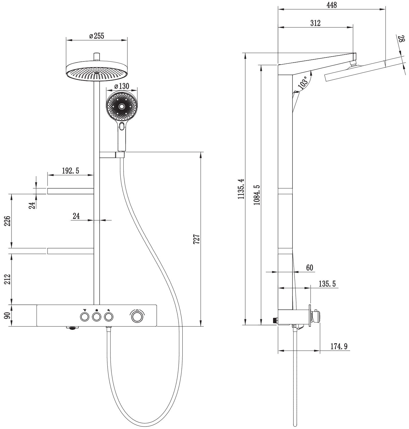 Размер на душ главата: ø255 мм