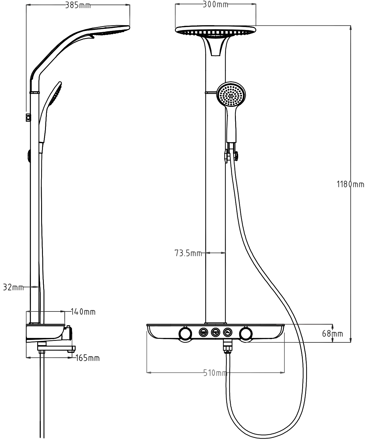 Разстояние от стената: 385 мм