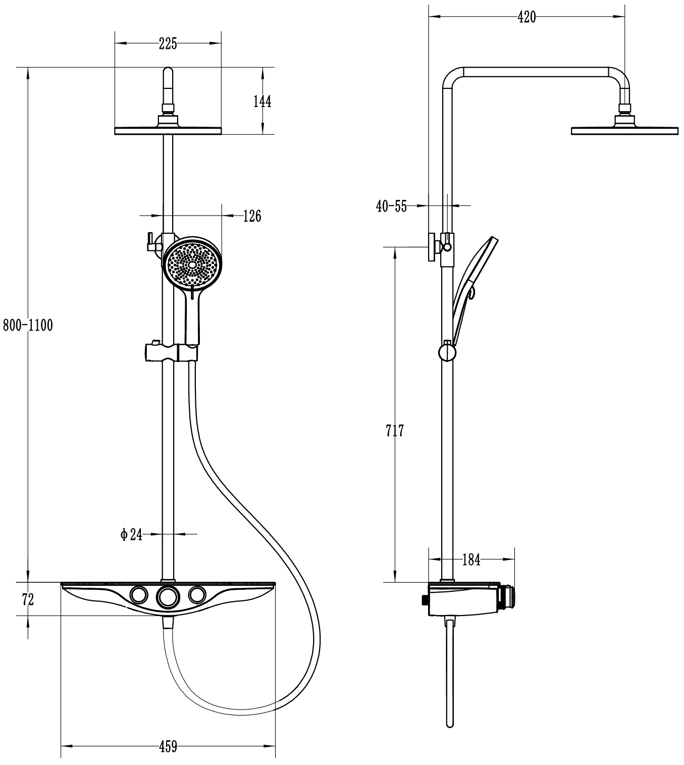 Размер на душ главата: ø225 мм