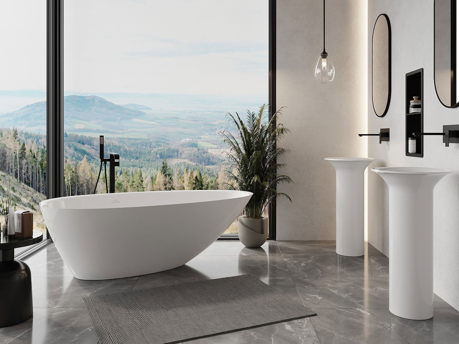 Mexen Milano самостоятелна вана от конгломерат 170 x 86 см, бял гланц - 57301708510