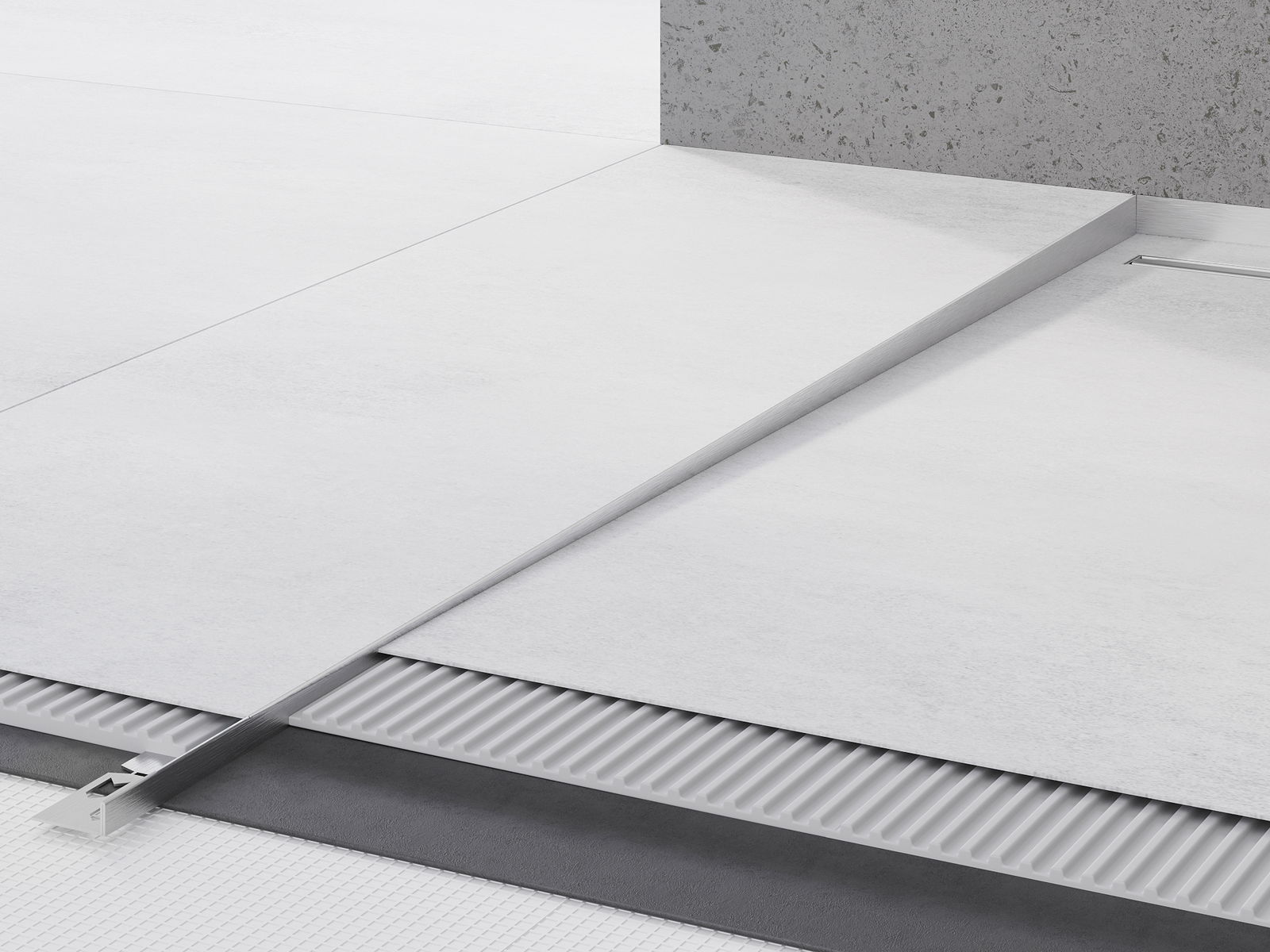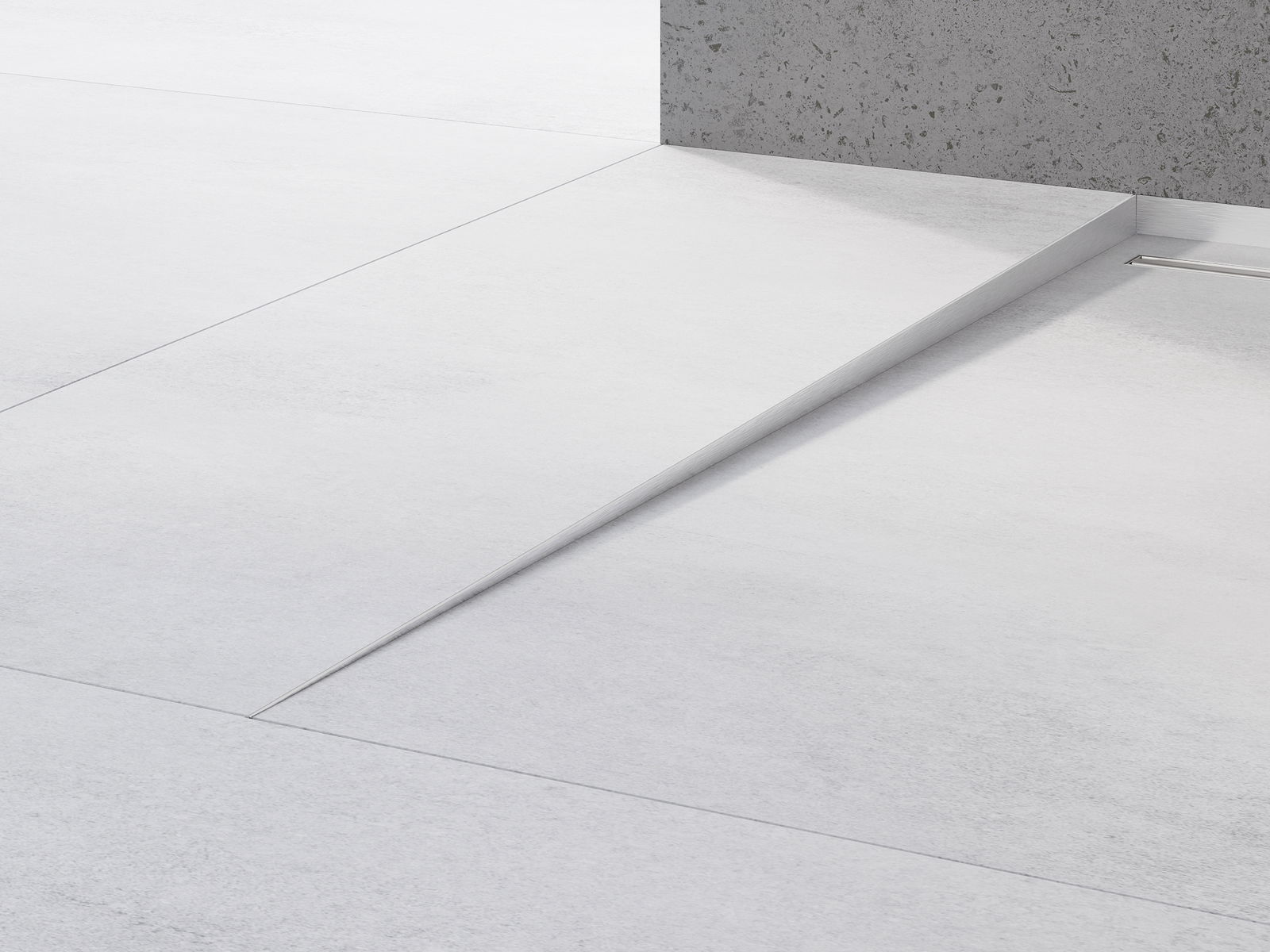 Наклонената лента има прецизно настроен ъгъл на наклона, който ефективно насочва водата към канализацията, предотвратявайки натрупването й на повърхността на пода. Благодарение на това водата се отвежда ефективно, което минимизира риска от образуване на локви и осигурява суха и безопасна повърхност.