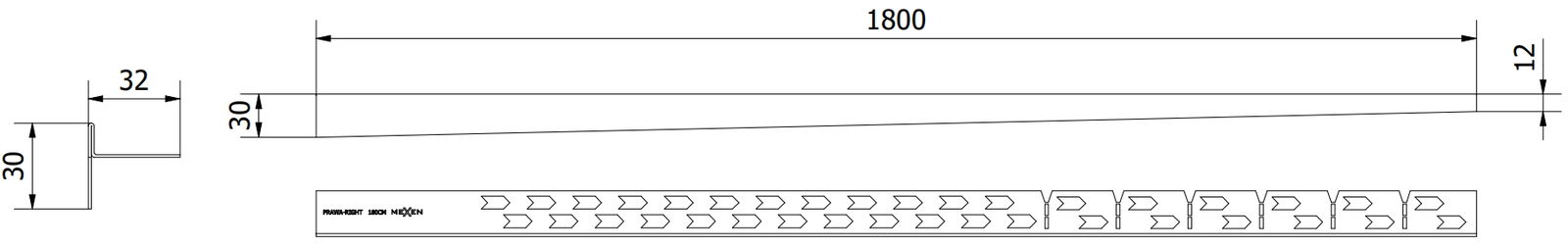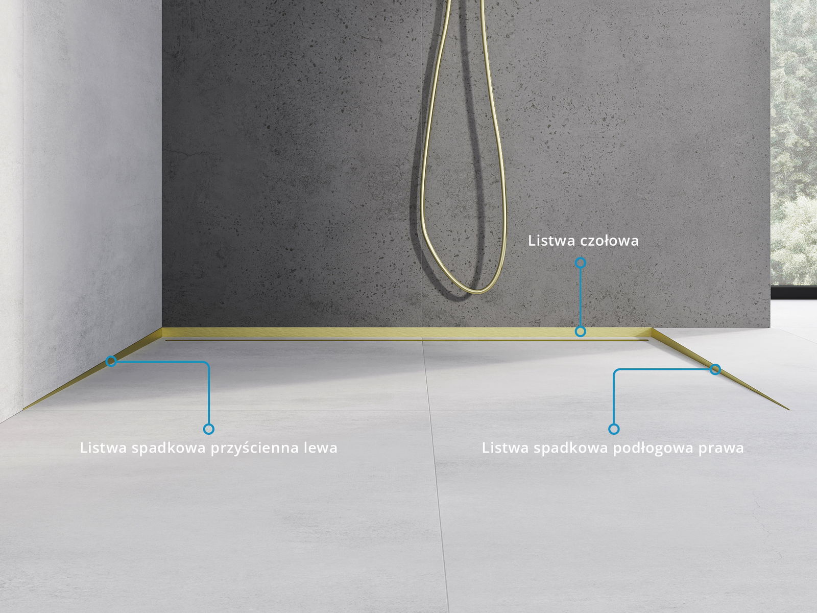 Страничният ръб на лайстата принуждава едностранен наклон към линейния дренаж без необходимост от извършване на така нареченото "плик"