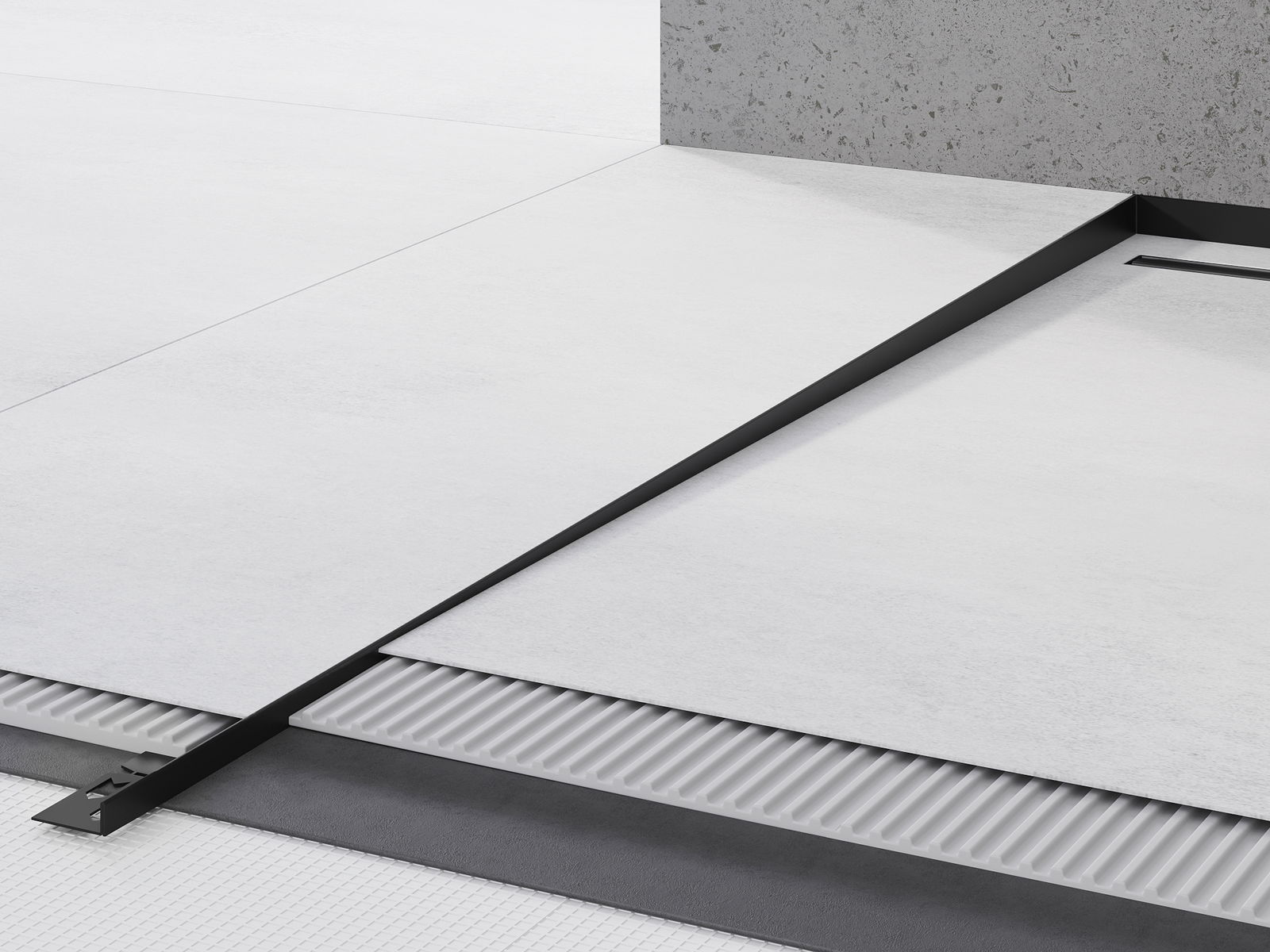 Наклонената лента има прецизно настроен ъгъл на наклона, който ефективно насочва водата към канализацията, предотвратявайки натрупването й на повърхността на пода. Благодарение на това водата се отвежда ефективно, което минимизира риска от образуване на локви и осигурява суха и безопасна повърхност.