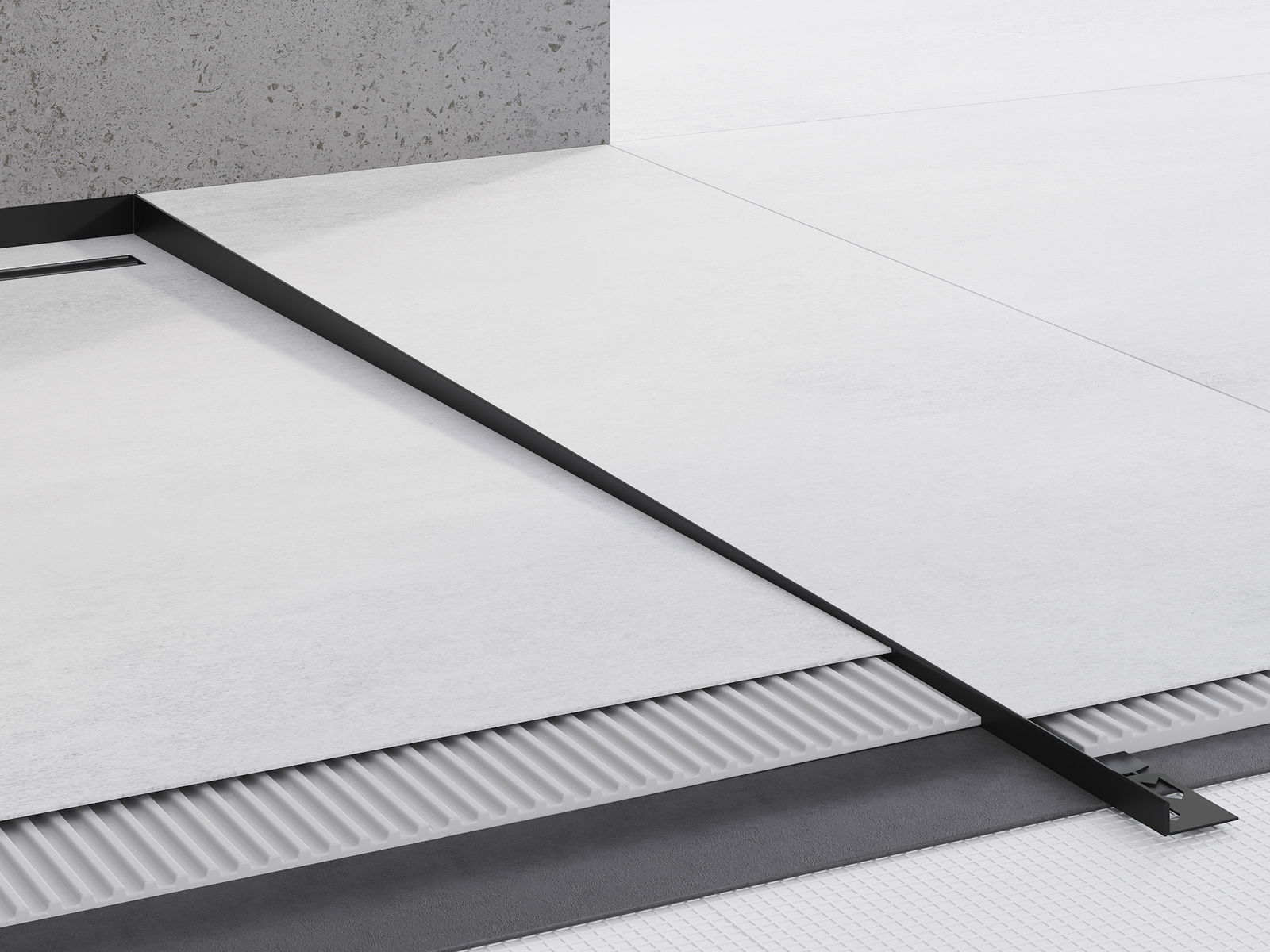 Наклонената лента има прецизно настроен ъгъл на наклона, който ефективно насочва водата към канализацията, предотвратявайки натрупването й на повърхността на пода. Благодарение на това водата се отвежда ефективно, което минимизира риска от образуване на локви и осигурява суха и безопасна повърхност.