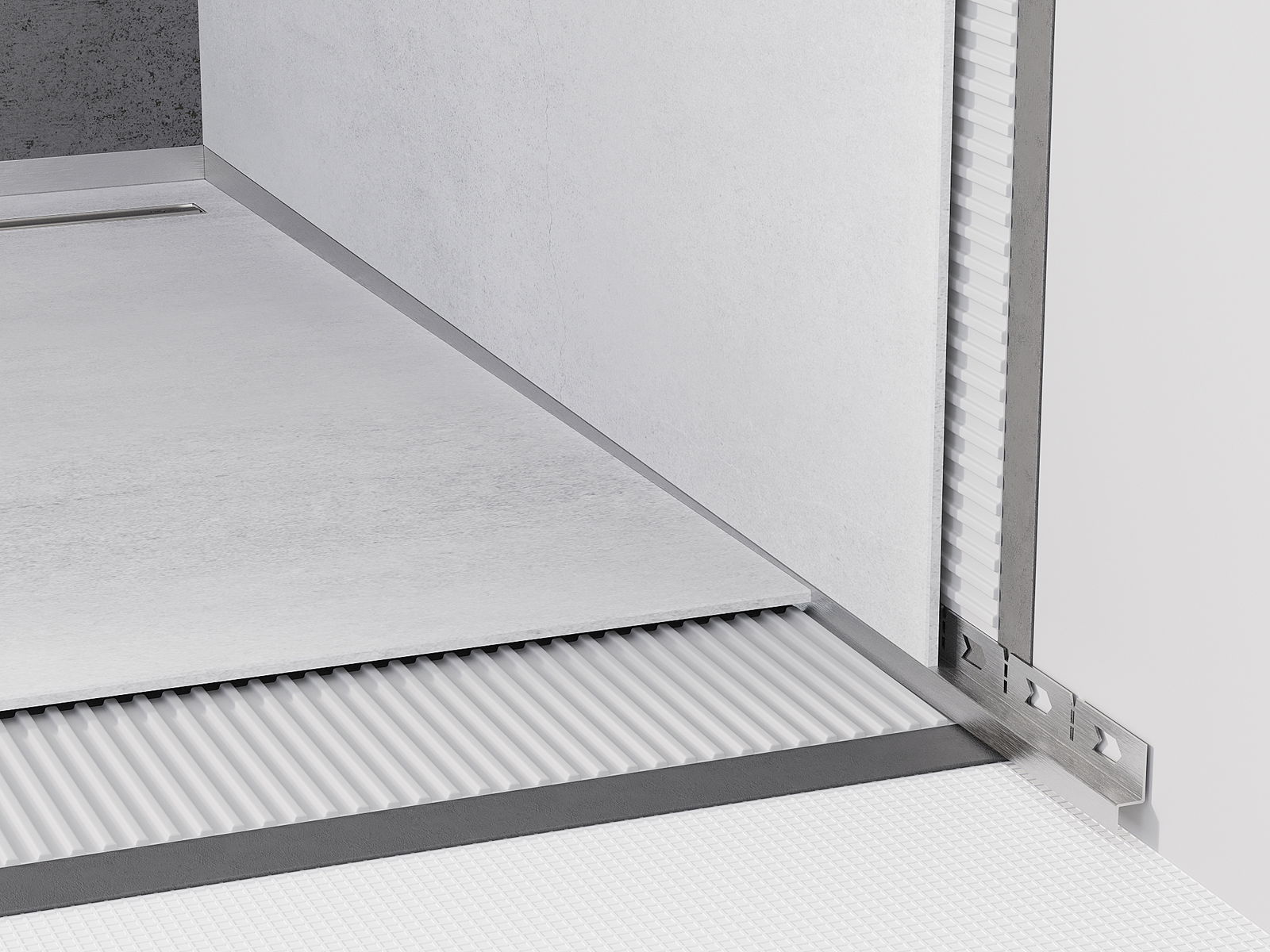 Наклонената лента има прецизно настроен ъгъл на наклона, който ефективно насочва водата към канализацията, предотвратявайки натрупването й на повърхността на пода. Благодарение на това водата се отвежда ефективно, което минимизира риска от образуване на локви и осигурява суха и безопасна повърхност.