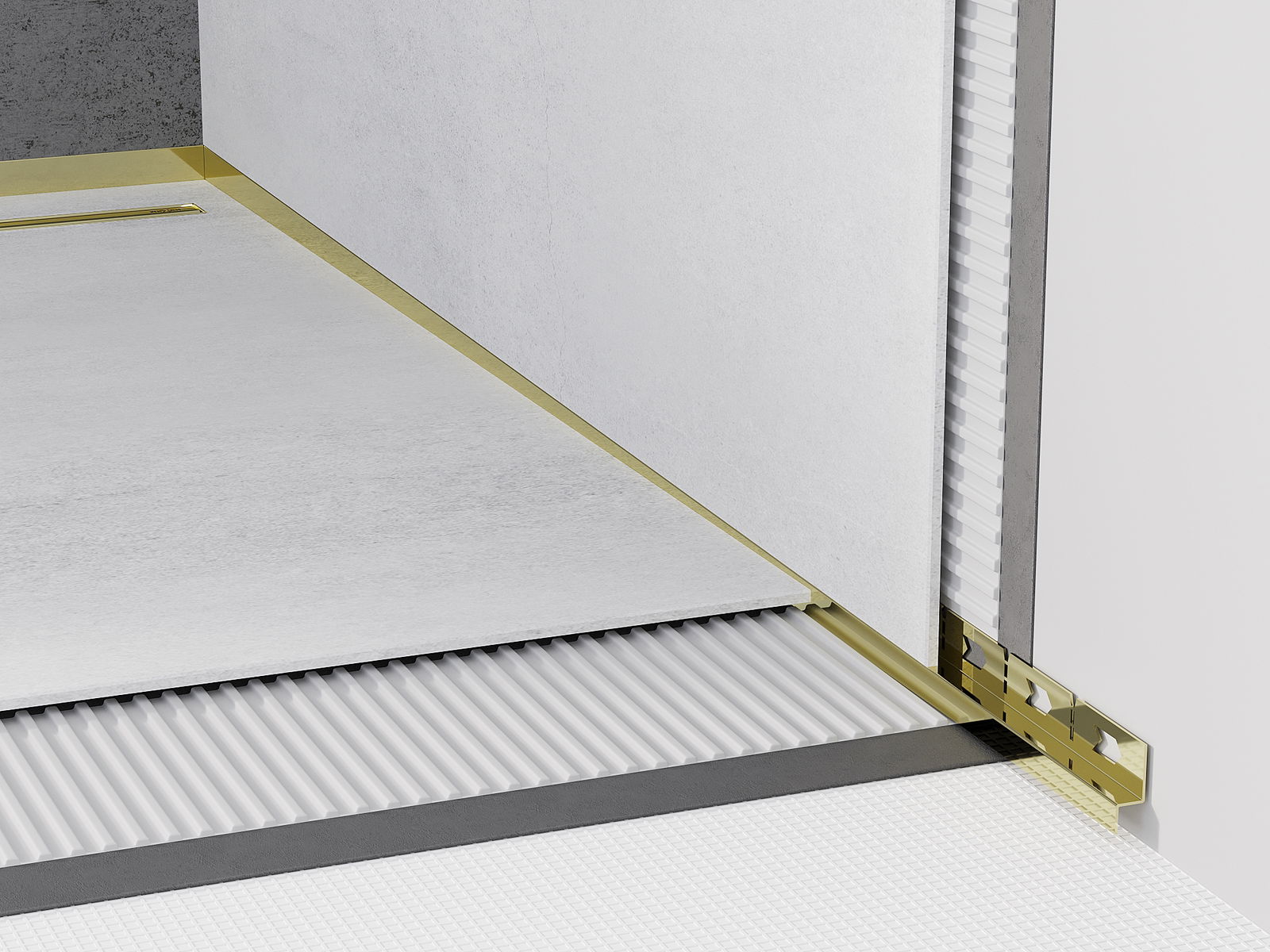 Наклонената лента има прецизно настроен ъгъл на наклона, който ефективно насочва водата към канализацията, предотвратявайки натрупването й на повърхността на пода. Благодарение на това водата се отвежда ефективно, което минимизира риска от образуване на локви и осигурява суха и безопасна повърхност.