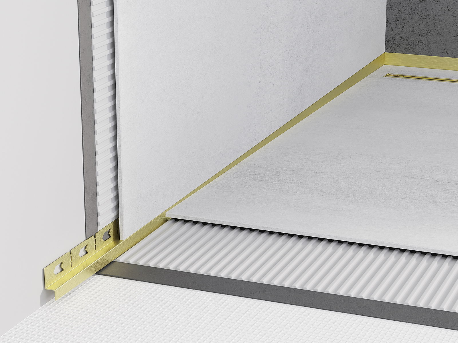 Наклонената лента има прецизно настроен ъгъл на наклона, който ефективно насочва водата към канализацията, предотвратявайки натрупването й на повърхността на пода. Благодарение на това водата се отвежда ефективно, което минимизира риска от образуване на локви и осигурява суха и безопасна повърхност.