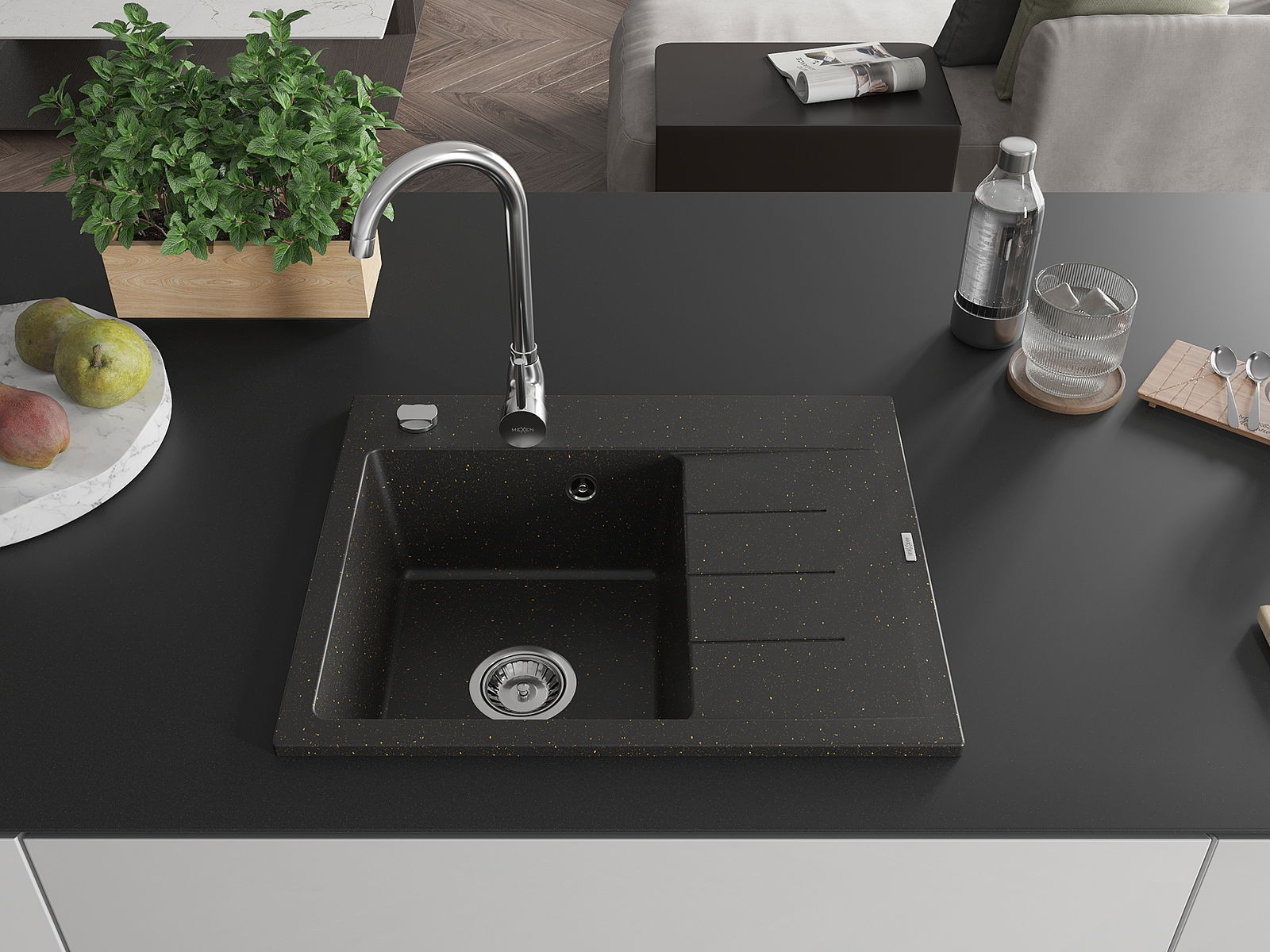 Mexen Ben гранитна мивка с 1 отделение и отцедник, лява 600 x 500 мм,