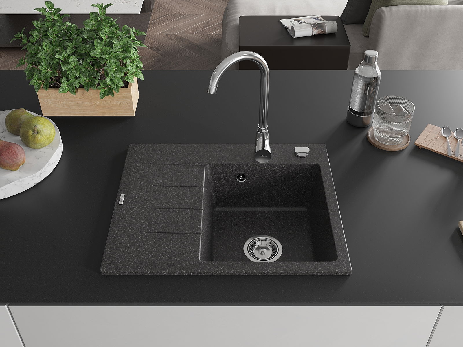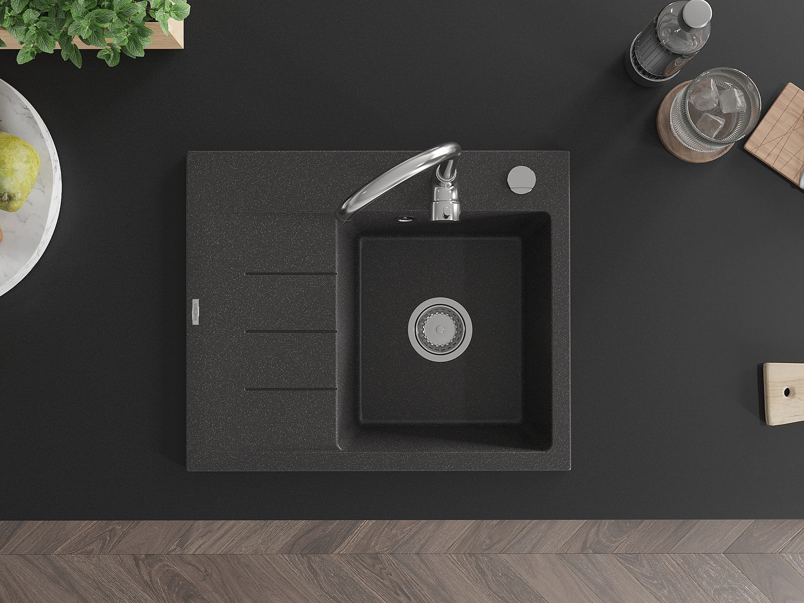 Mexen Ben гранитна мивка с една камера с отцедник, дясна 600 x 500 мм, черна на