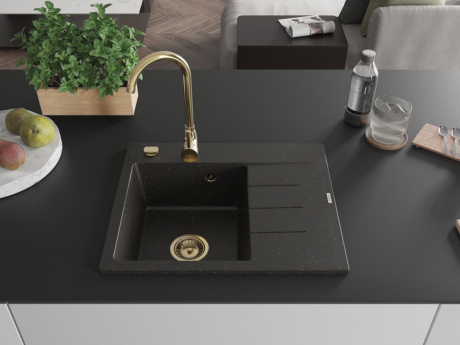 Mexen Ben гранитна мивка с 1 отделение и отцедник, лява, 600 x 500 mm,