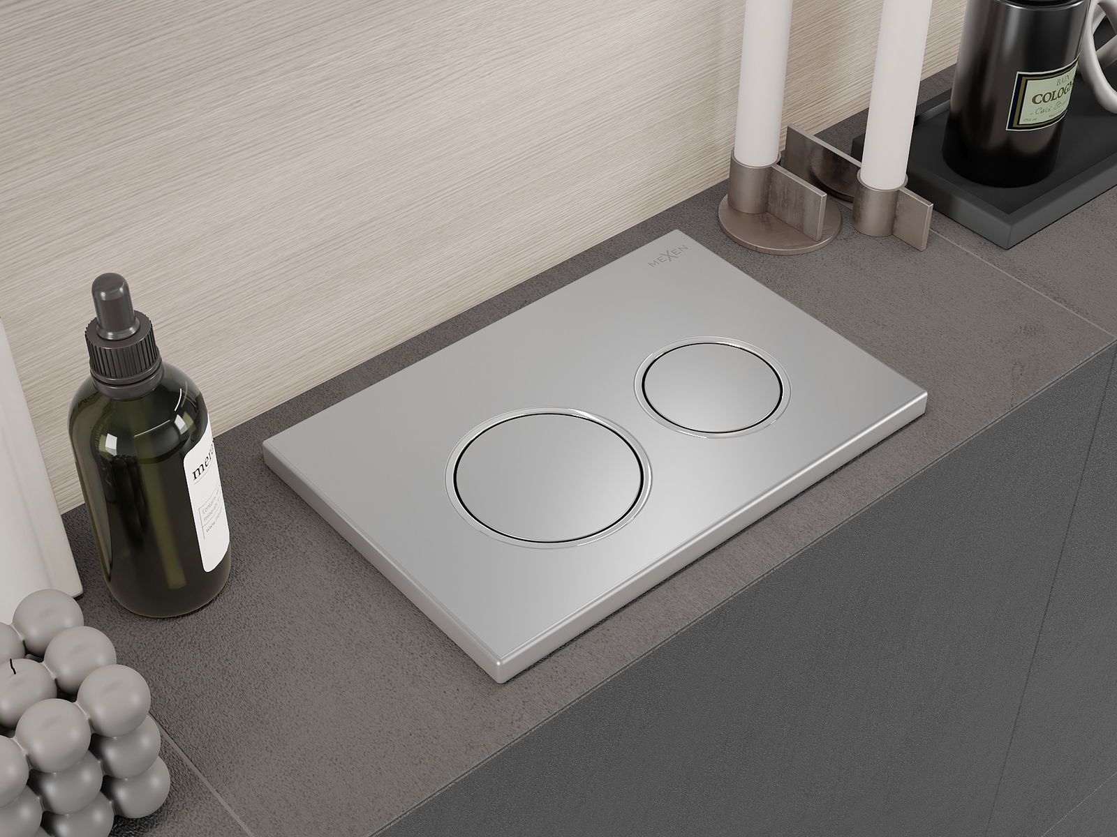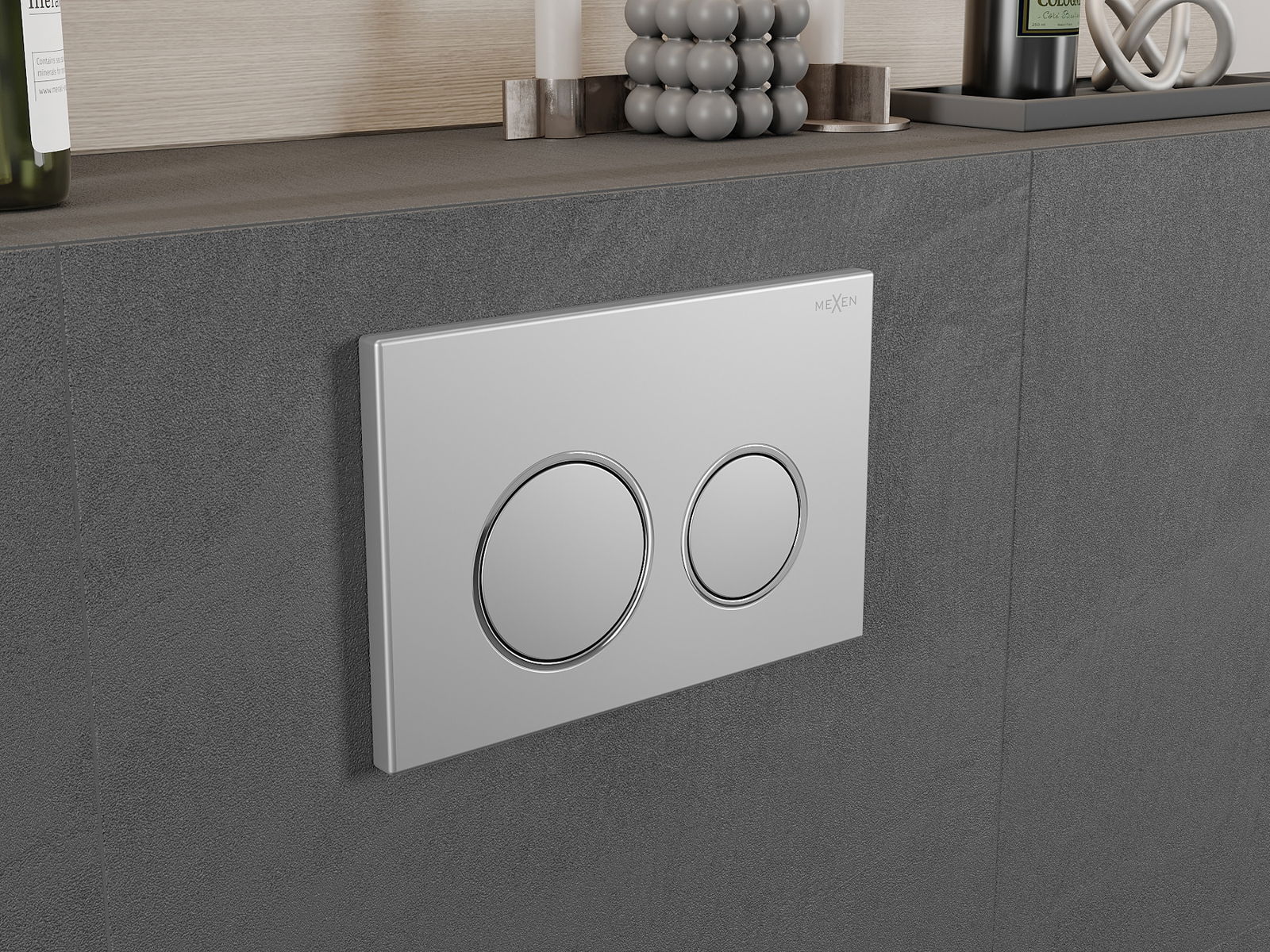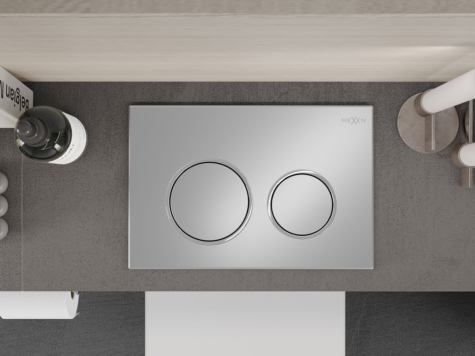 Бутонът е предназначен за рамки Mexen от серията XS. Може да бъде монтиран както отпред, така и отгоре на рамката, което увеличава неговата универсалност. Това решение улеснява инсталацията при различни монтажни условия. Благодарение на това, използването на изплакването е удобно и интуитивно.