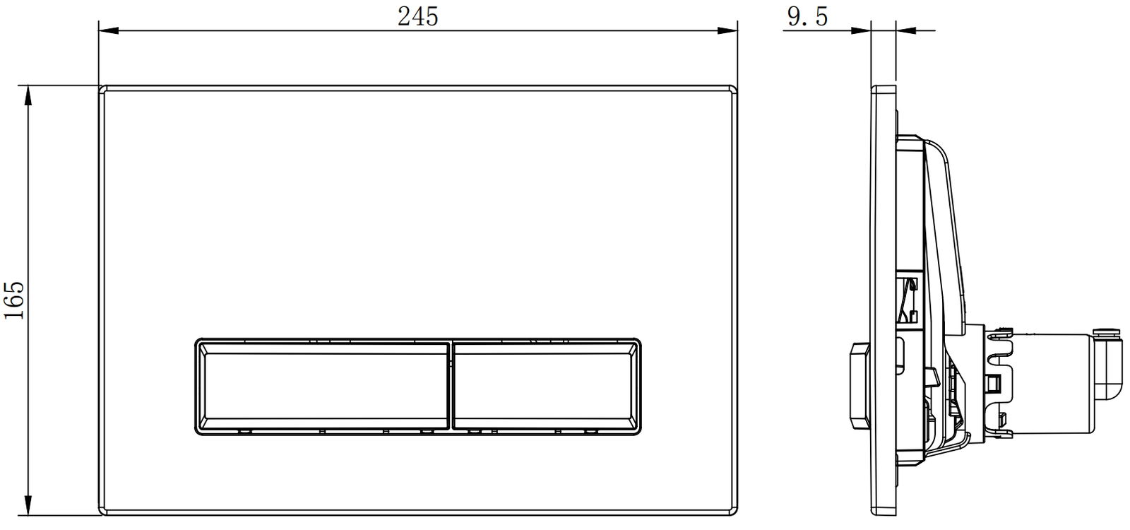 Бутонът е предназначен за надстенни конструкции, където мястото за монтаж се намира отпред на конструкцията. Благодарение на тази позиция се осигурява лесен достъп и удобна експлоатация при промиване.