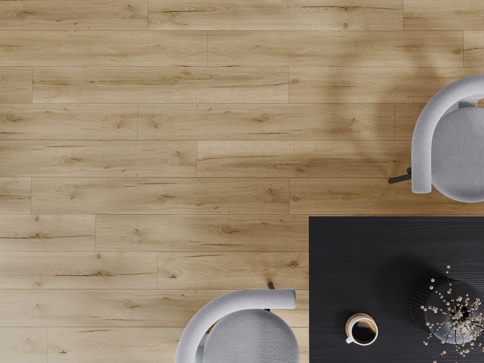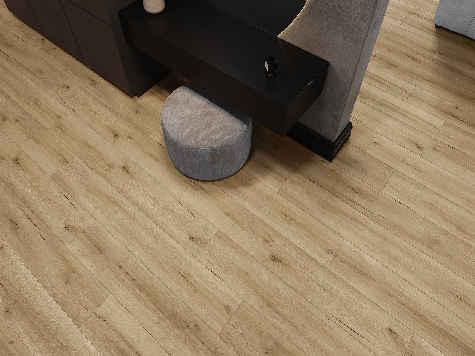 Панелите имат 4-странна фуга - всяка страна е обработена така, че при нареждане да се образува V-образно съединение. Този дизайн придава на пода по-изразена структура, което му добавя дълбочина и естетически характер. Този ефект е особено ценен в съвременните интериори, където детайлите подчертават уникалния изглед на вътрешността.