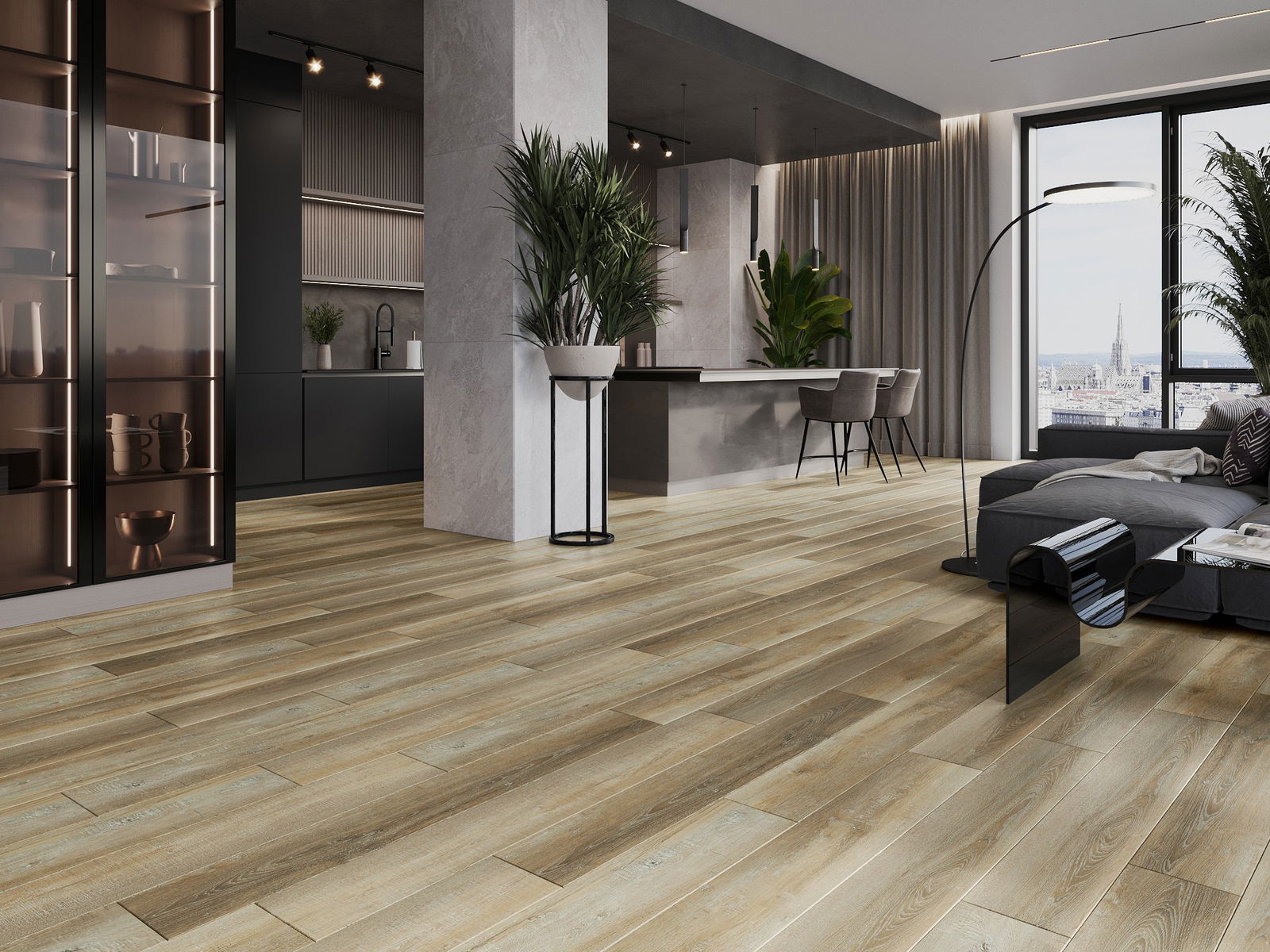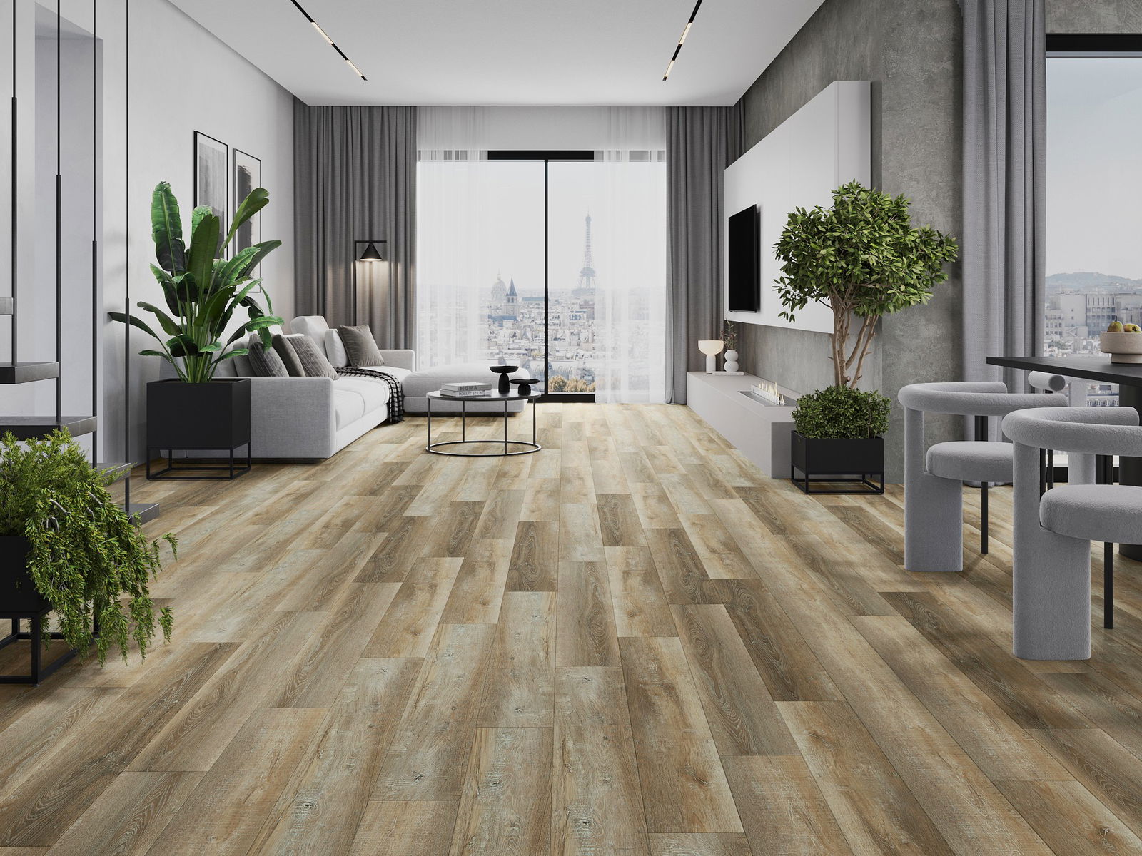 Mexen Cortland е висококачествен винилов панел, който идеално се вписва във всяко интериорно пространство. С дебелина от 6,5 мм и 4-странна V-фуга, панелите са както естетични, така и практични. Интегрираната подложка IXPE осигурява допълнителен комфорт и акустична изолация. Водоустойчивост от 100% ги прави идеални за помещения, изложени на влага. Допълнително, панелите са устойчиви на механични повреди и надрасквания, което ги прави подходящи за интензивна употреба и съвместимост със системи за подово отопление.