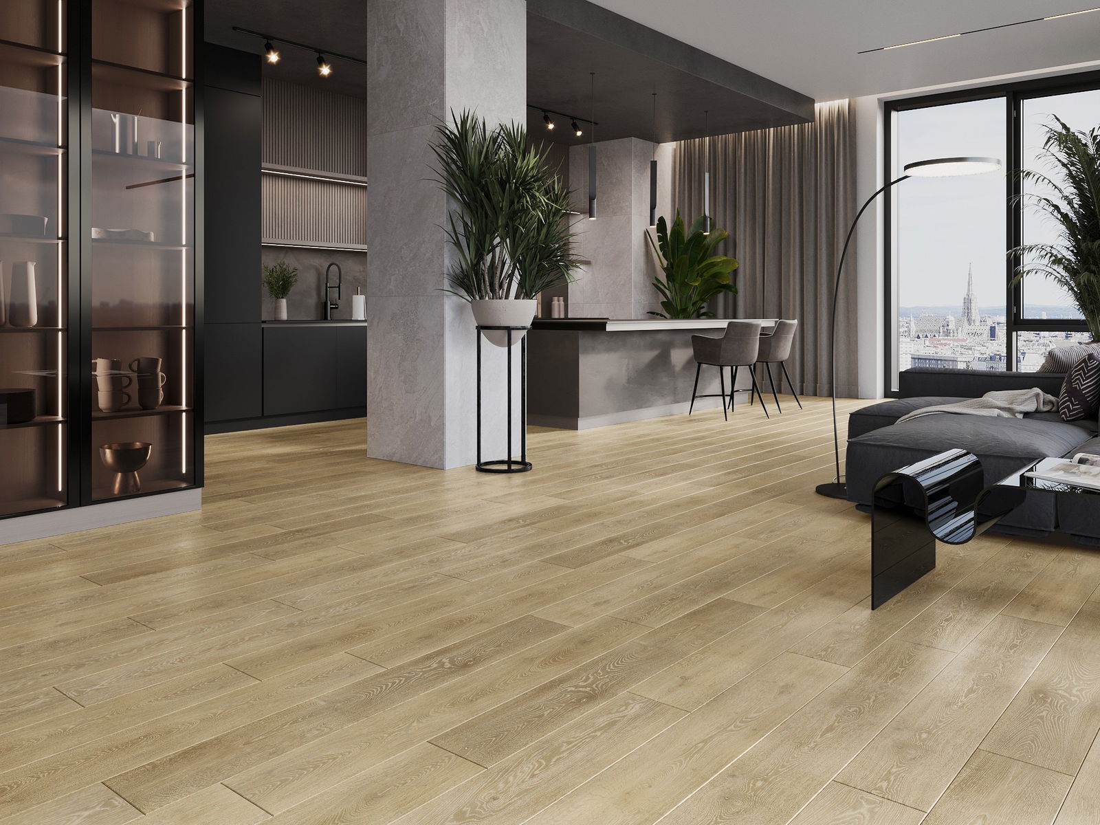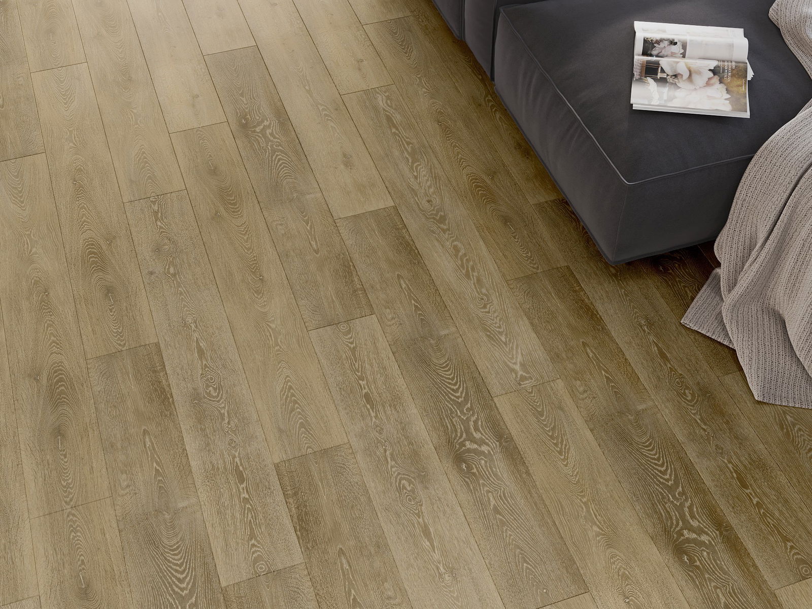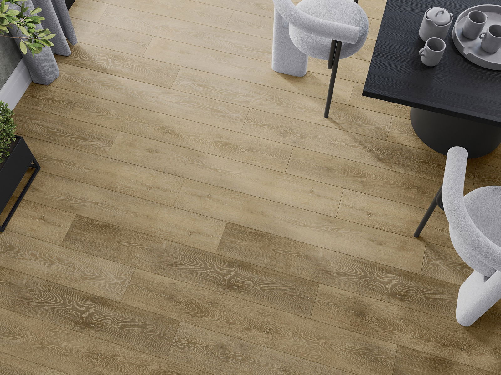Панелите имат 4-странна фуга - всяка страна е обработена така, че при нареждане да се образува V-образно съединение. Този дизайн придава на пода по-изразена структура, което му добавя дълбочина и естетически характер. Този ефект е особено ценен в съвременните интериори, където детайлите подчертават уникалния изглед на вътрешността.