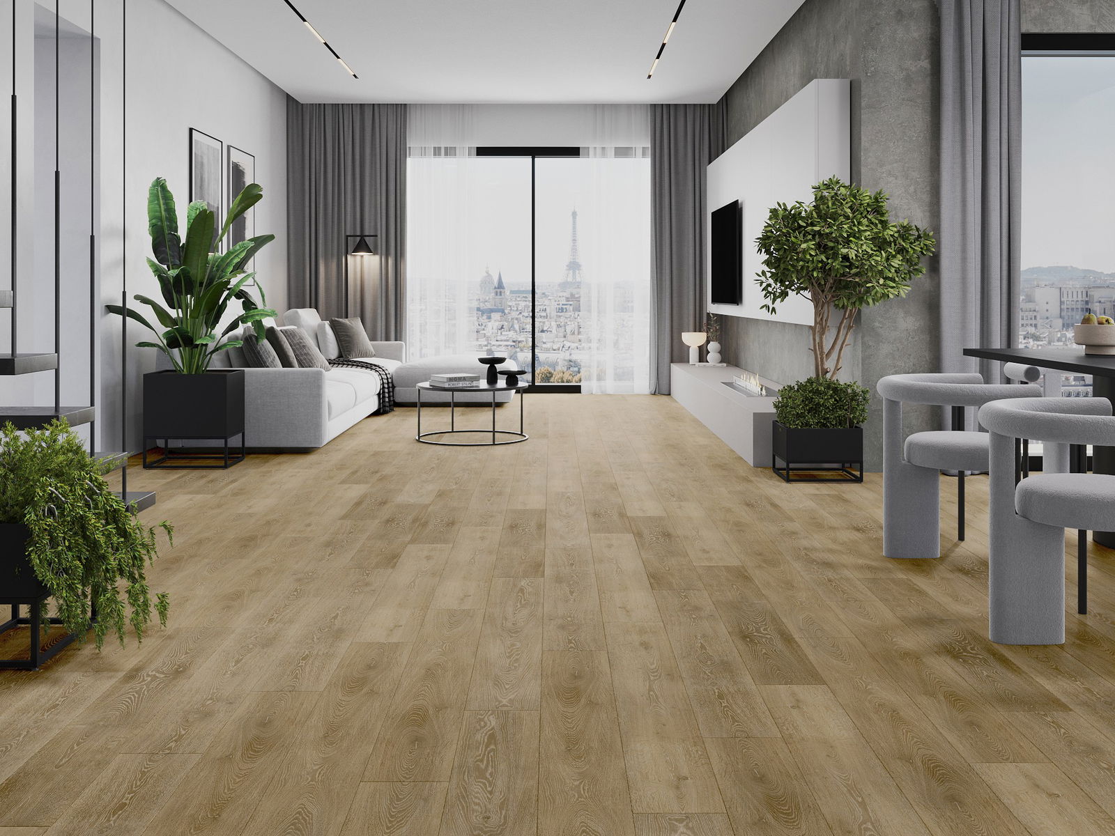 Панелът се отличава с фини жилки и релефи, които перфектно имитират избрания дървесен вид. Благодарение на този ефект, помещението придобива елегантен, но същевременно естествен и уютен характер.