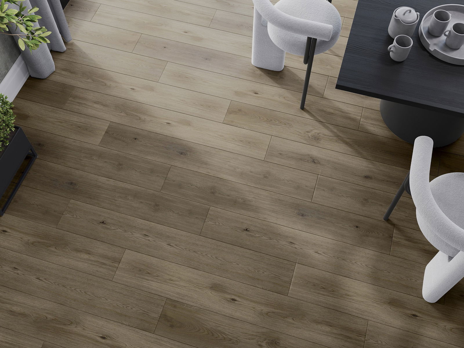 Панелите имат 4-странна фуга - всяка страна е обработена така, че при нареждане да се образува V-образно съединение. Този дизайн придава на пода по-изразена структура, което му добавя дълбочина и естетически характер. Този ефект е особено ценен в съвременните интериори, където детайлите подчертават уникалния изглед на вътрешността.