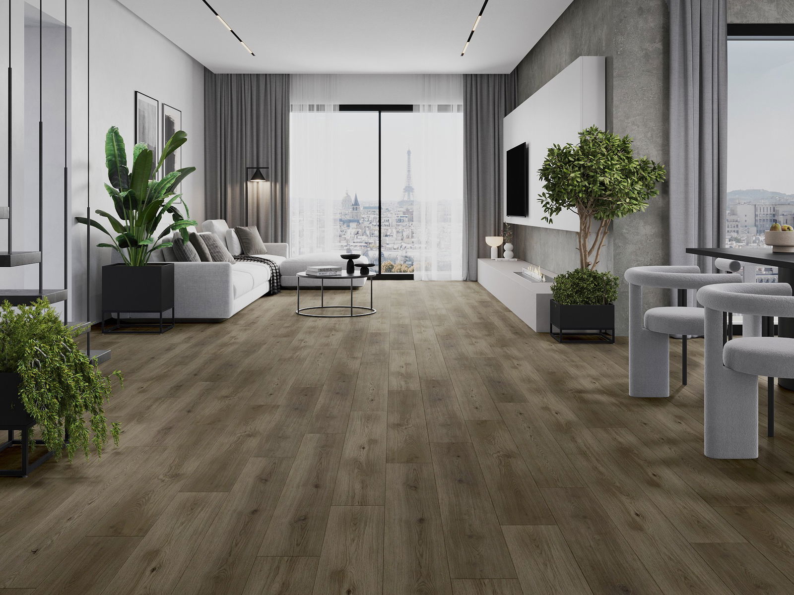 Панелът се отличава с фини жилки и релефи, които перфектно имитират избрания дървесен вид. Благодарение на този ефект, помещението придобива елегантен, но същевременно естествен и уютен характер.