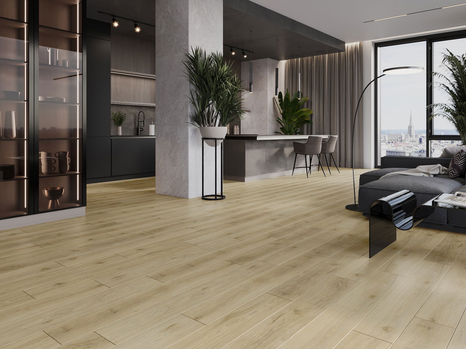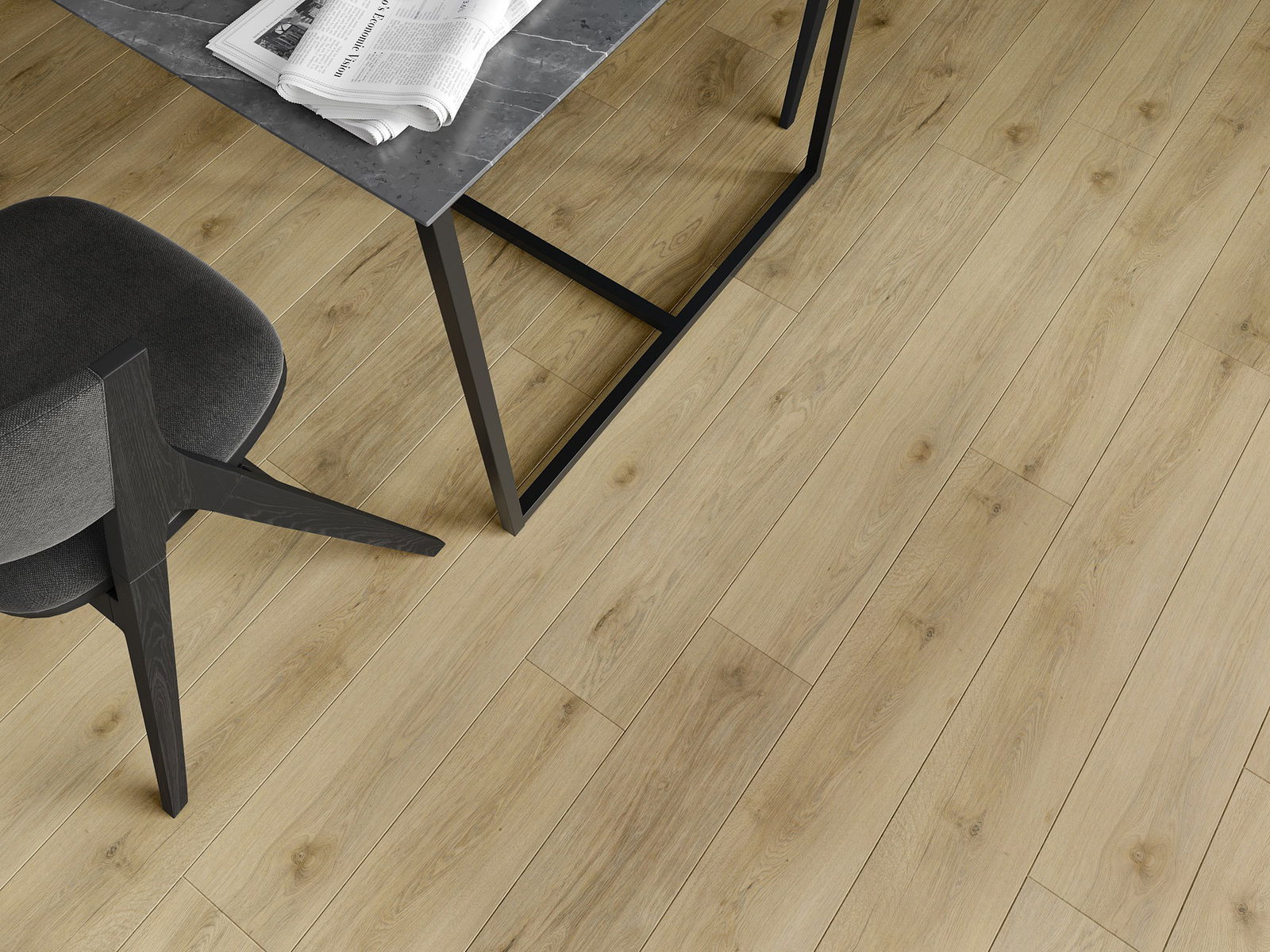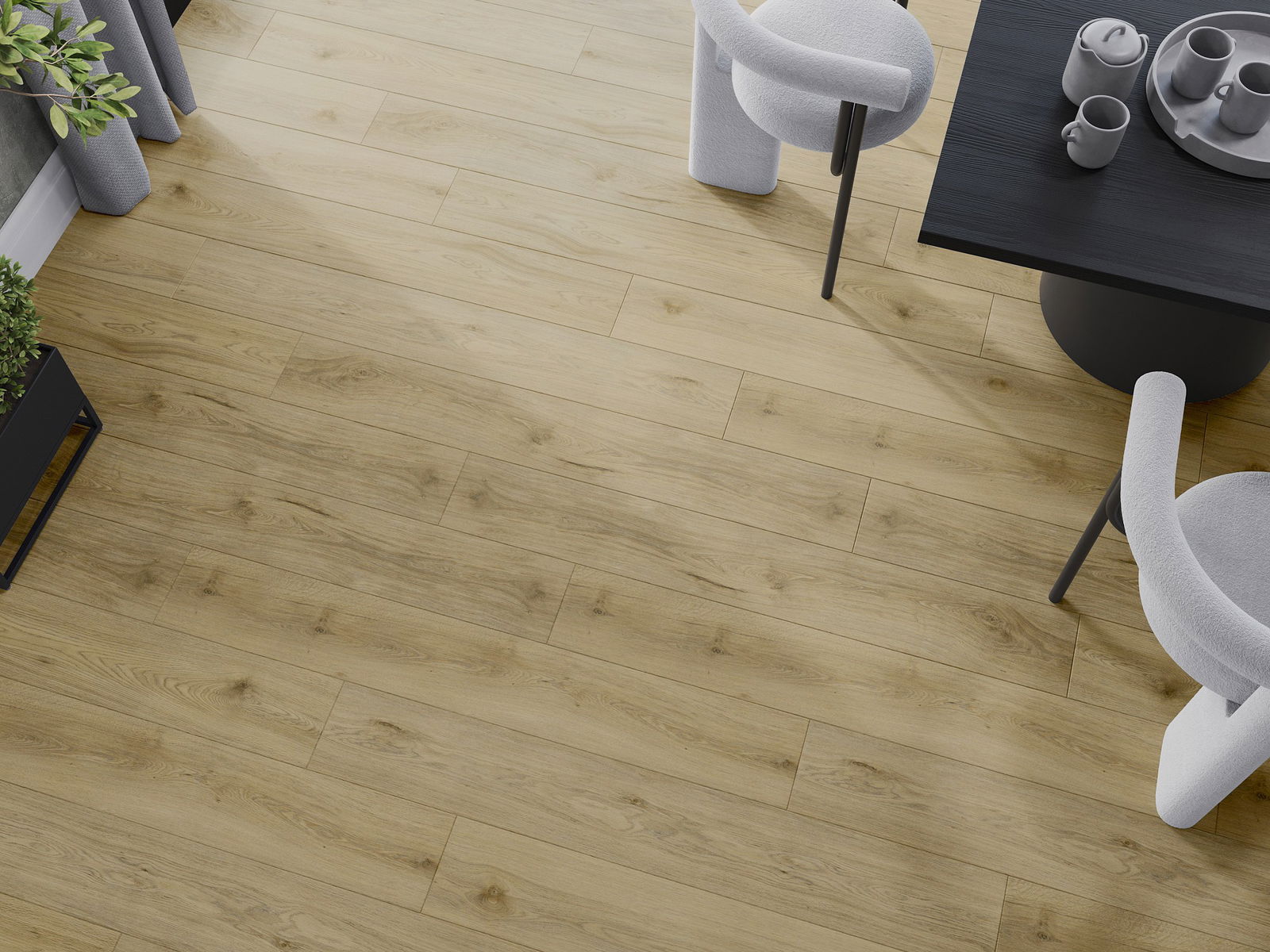 Панелите имат 4-странна фуга - всяка страна е обработена така, че при нареждане да се образува V-образно съединение. Този дизайн придава на пода по-изразена структура, което му добавя дълбочина и естетически характер. Този ефект е особено ценен в съвременните интериори, където детайлите подчертават уникалния изглед на вътрешността.