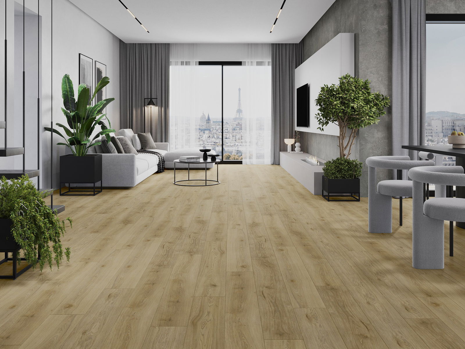 Винилов панел Mexen Charter Oak е изключителен избор, съчетаващ естетика и функционалност. Благодарение на размерите 1240 x 182 мм и дебелина 6,5 мм, този тип панел идеално се вписва във всяко интериорно пространство. Интегрираната подложка IXPE осигурява комфорт и изолация, а 100% водоустойчивост гарантира издръжливост. Класът на използваемост 32 и устойчивостта на драскотини правят това продукт за дълги години. Допълнителните предимства са лесният монтаж със система Uniclick 2G и почистване, което повишава комфорта при използване.