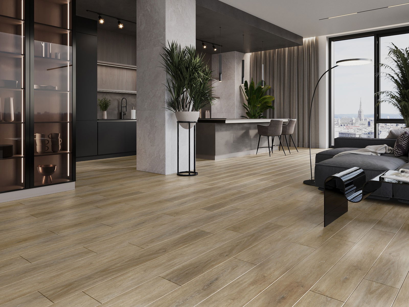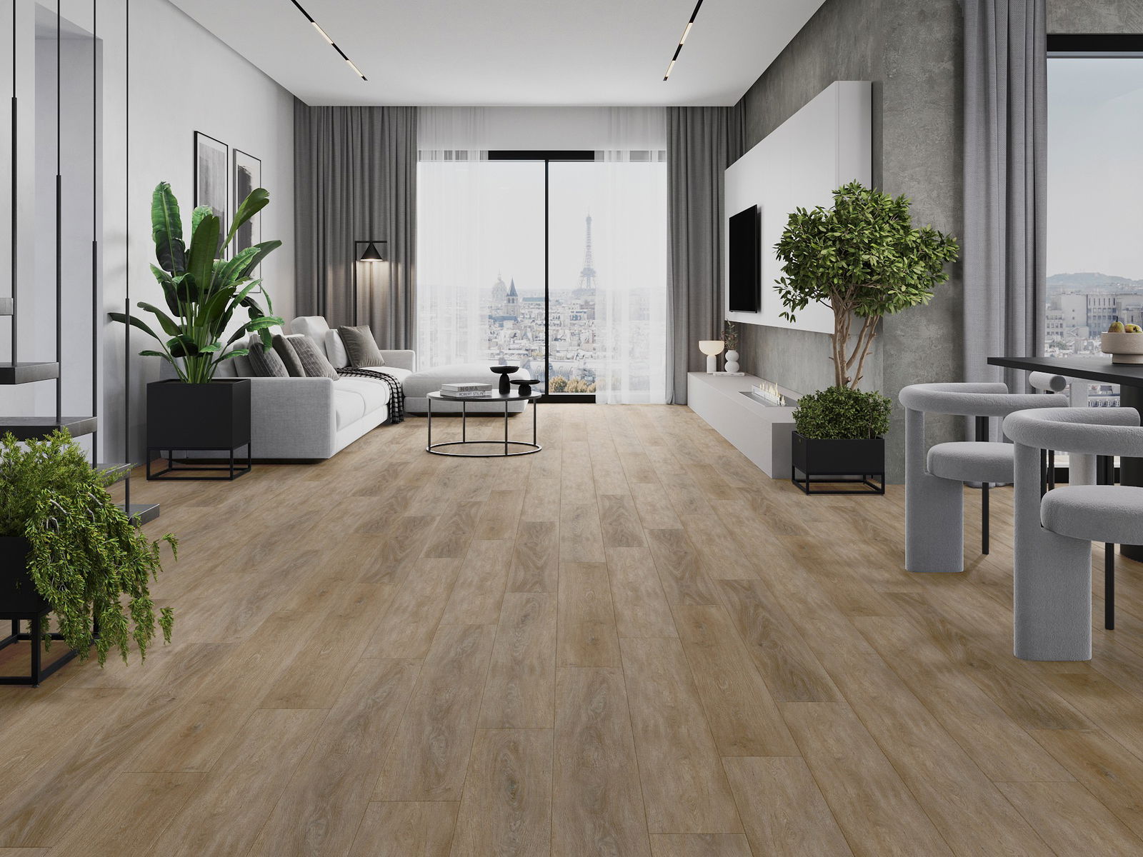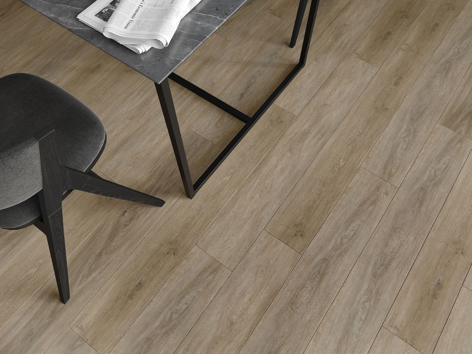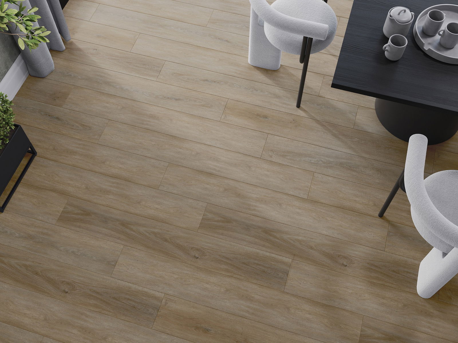 Панелите имат 4-странна фуга - всяка страна е обработена така, че при нареждане да се образува V-образно съединение. Този дизайн придава на пода по-изразена структура, което му добавя дълбочина и естетически характер. Този ефект е особено ценен в съвременните интериори, където детайлите подчертават уникалния изглед на вътрешността.