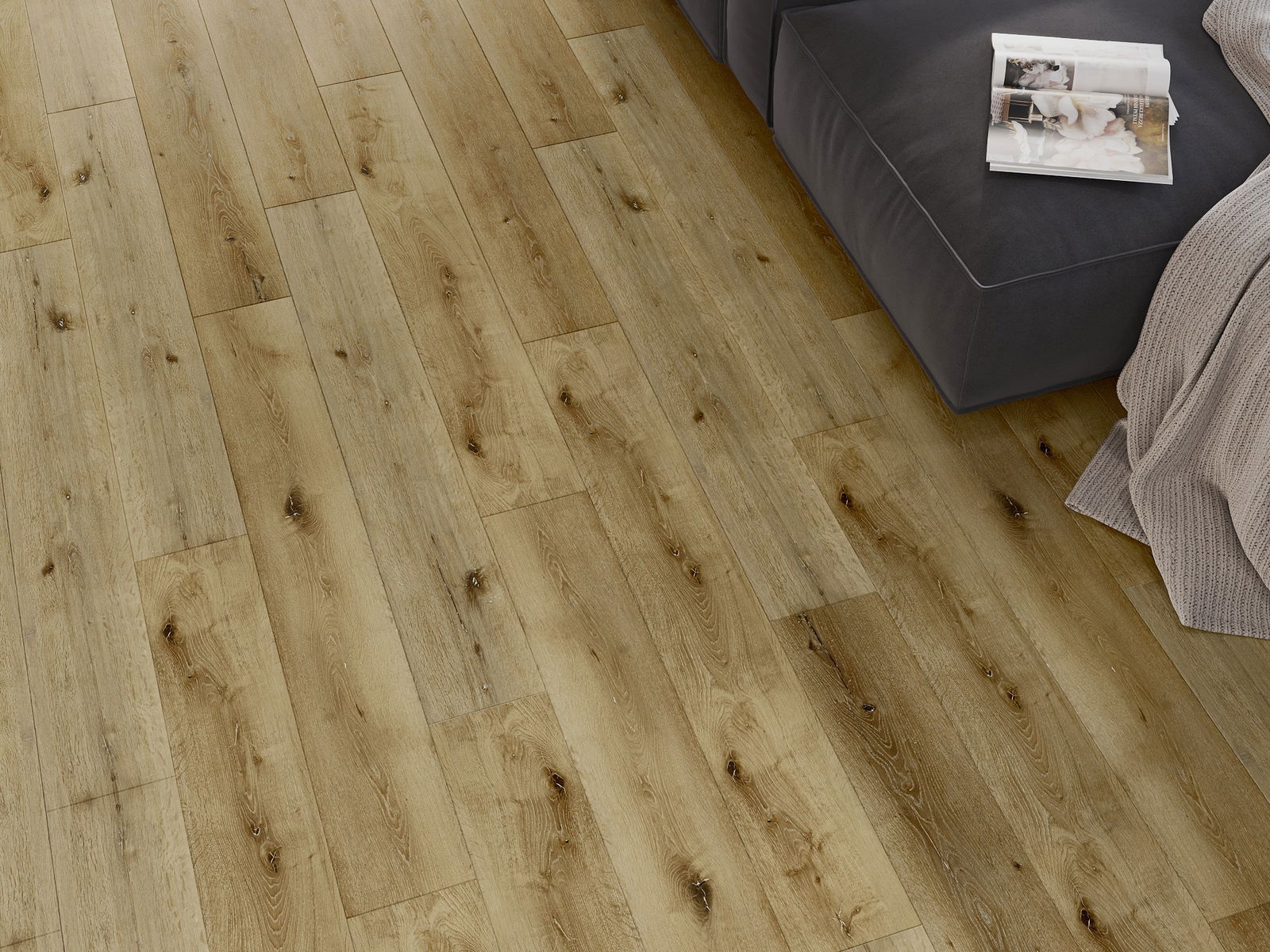 Панелите имат 4-странна фуга - всяка страна е обработена така, че при нареждане да се образува V-образно съединение. Този дизайн придава на пода по-изразена структура, което му добавя дълбочина и естетически характер. Този ефект е особено ценен в съвременните интериори, където детайлите подчертават уникалния изглед на вътрешността.