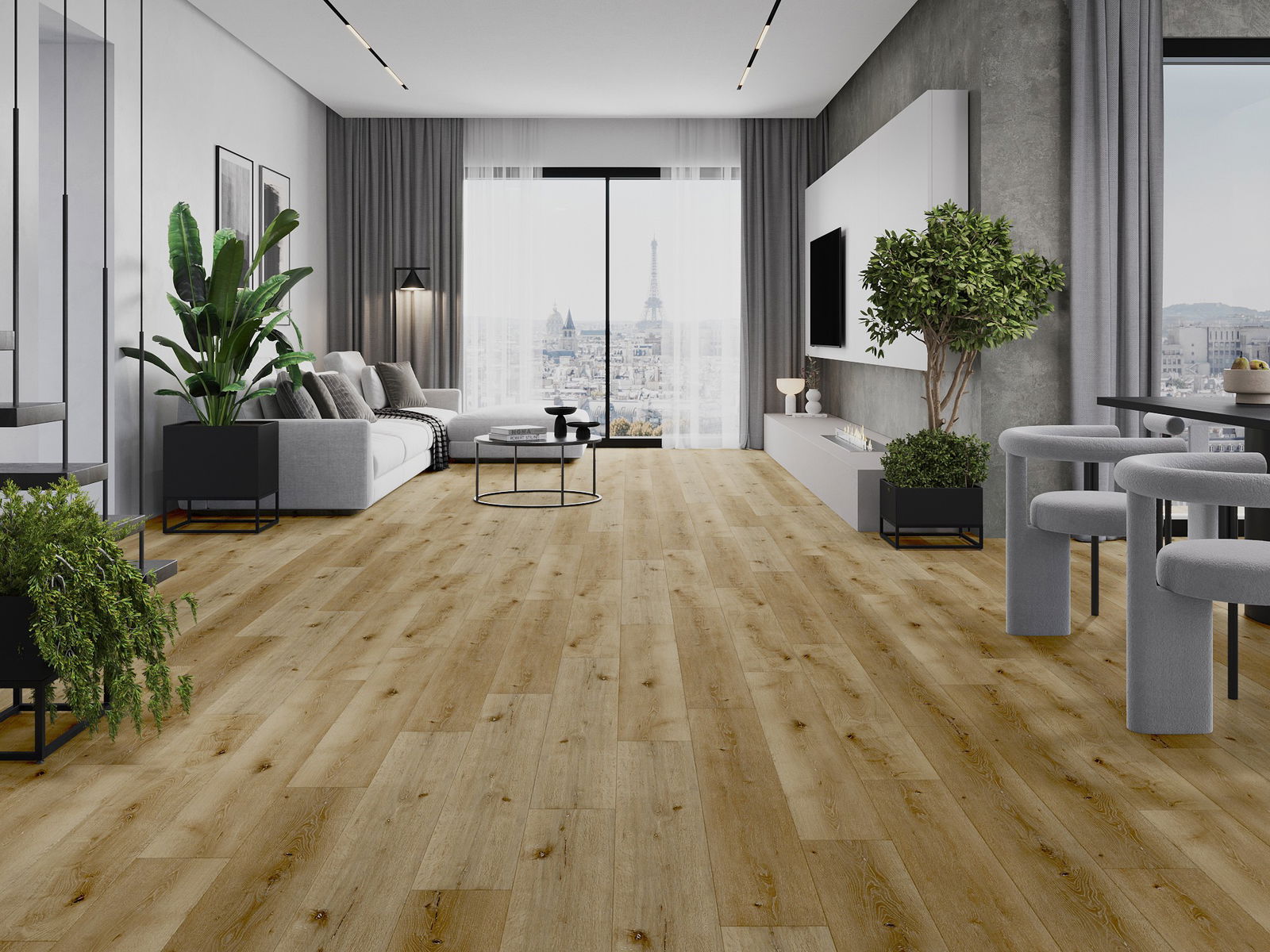 Панелът се отличава с фини жилки и релефи, които перфектно имитират избрания дървесен вид. Благодарение на този ефект, помещението придобива елегантен, но същевременно естествен и уютен характер.