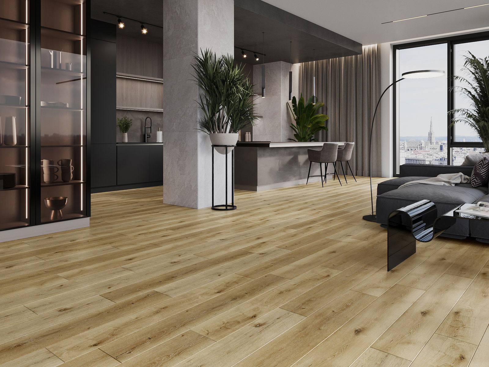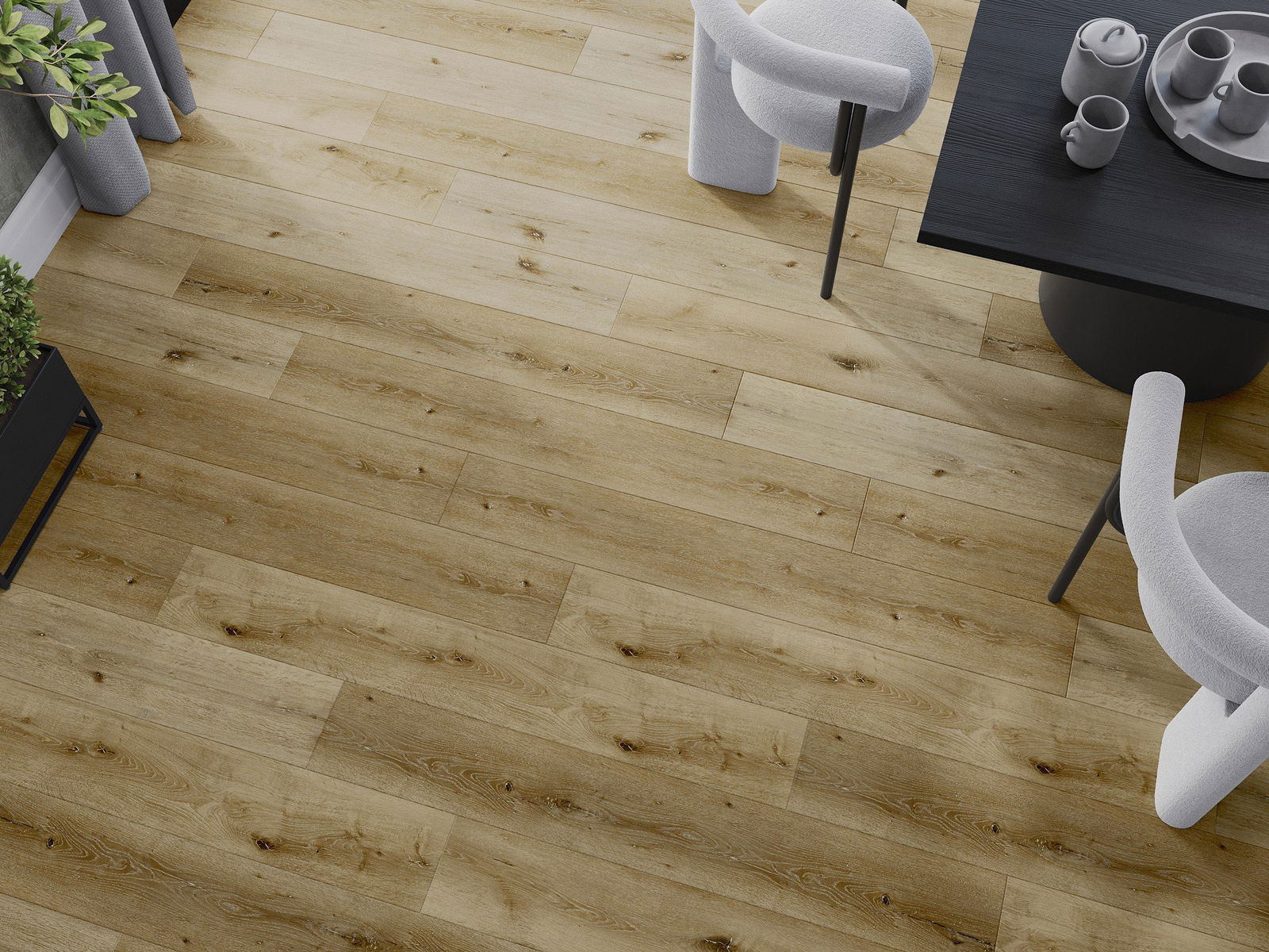 Панелите имат 4-странна фуга - всяка страна е обработена така, че при нареждане да се образува V-образно съединение. Този дизайн придава на пода по-изразена структура, което му добавя дълбочина и естетически характер. Този ефект е особено ценен в съвременните интериори, където детайлите подчертават уникалния изглед на вътрешността.