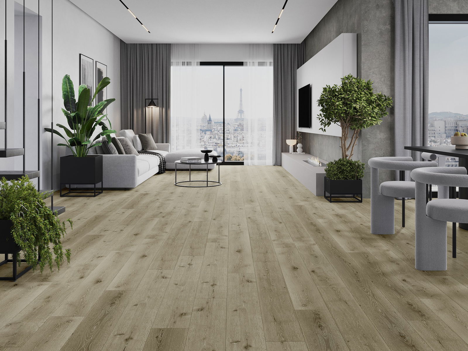 Панелите имат 4-странна фуга - всяка страна е обработена така, че при нареждане да се образува V-образно съединение. Този дизайн придава на пода по-изразена структура, което му добавя дълбочина и естетически характер. Този ефект е особено ценен в съвременните интериори, където детайлите подчертават уникалния изглед на вътрешността.