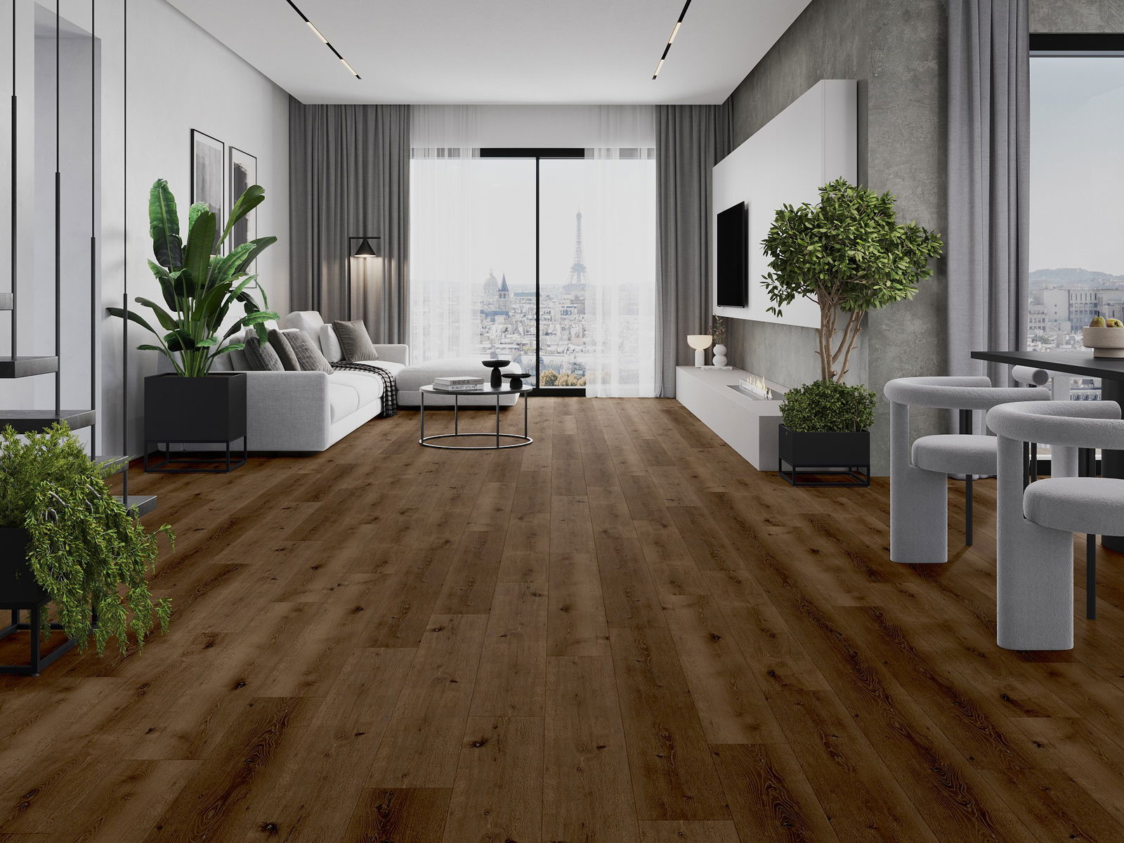 Панелът се отличава с фини жилки и релефи, които перфектно имитират избрания дървесен вид. Благодарение на този ефект, помещението придобива елегантен, но същевременно естествен и уютен характер.