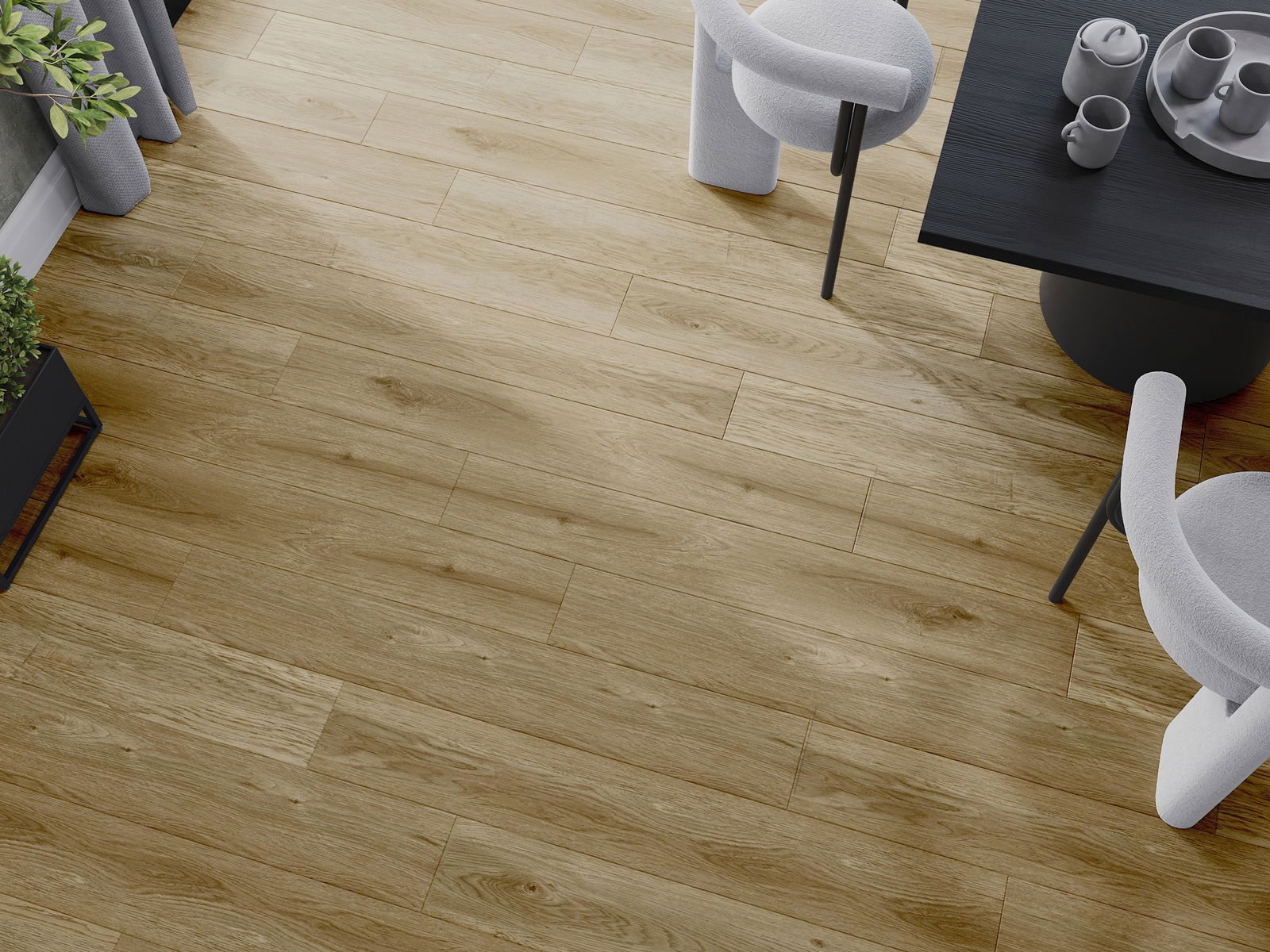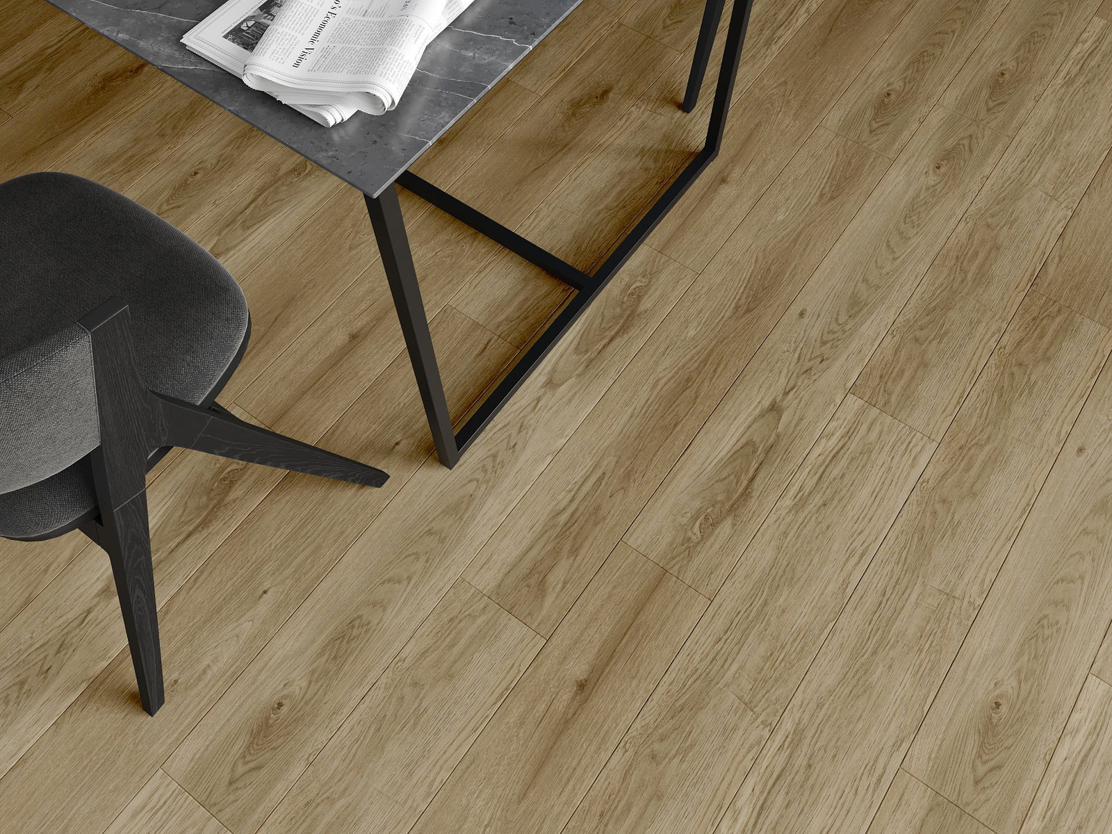 Панелите имат 4-странна фуга - всяка страна е обработена така, че при нареждане да се образува V-образно съединение. Този дизайн придава на пода по-изразена структура, което му добавя дълбочина и естетически характер. Този ефект е особено ценен в съвременните интериори, където детайлите подчертават уникалния изглед на вътрешността.