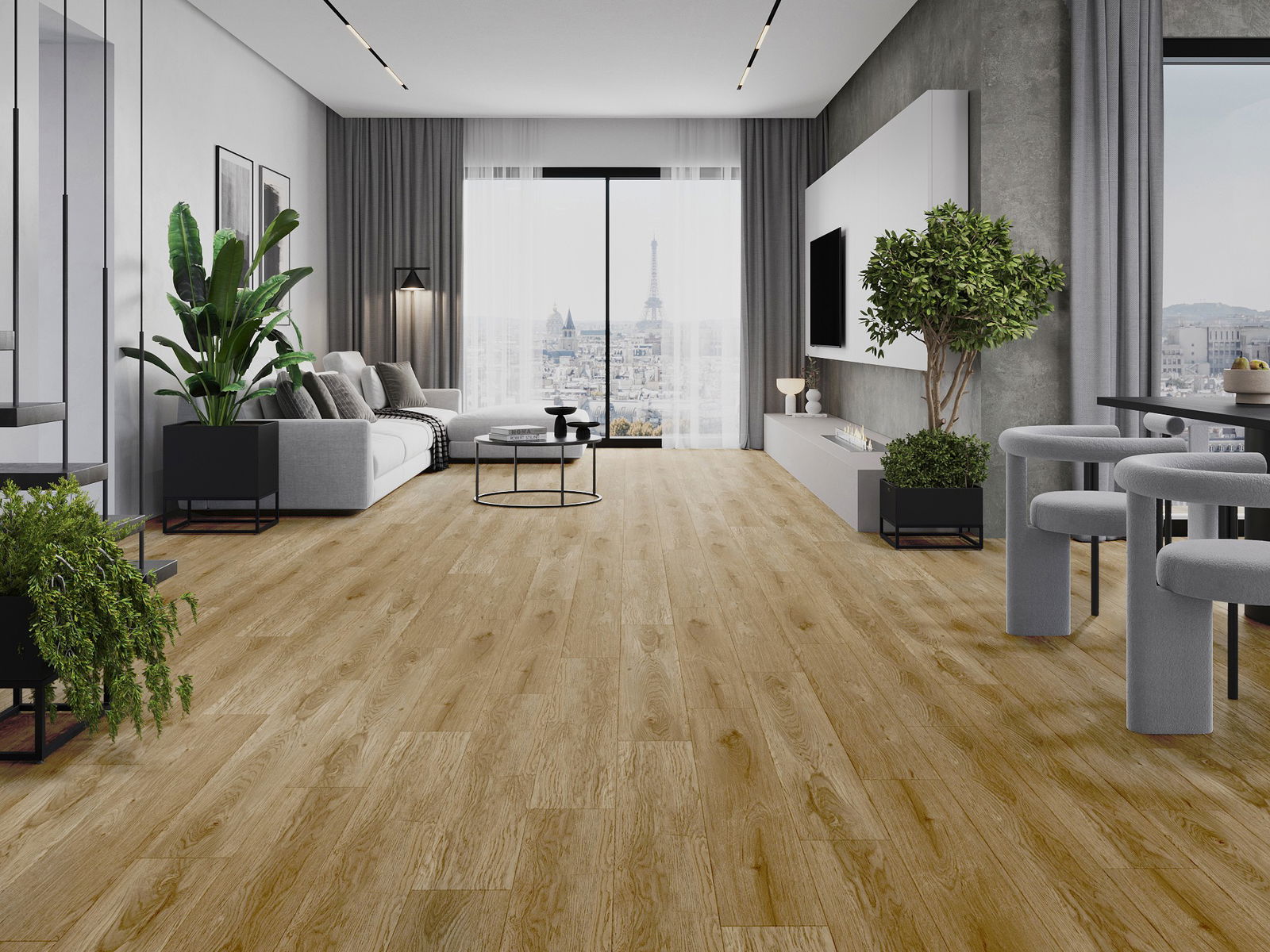 Виниловият панел се отличава със съвременен дизайн и отлични експлоатационни свойства. Има дебелина 6,5 мм и клас на използваемост 32, което осигурява високо качество и издръжливост. Благодарение на 100% водоустойчивост и устойчивост на механични повреди, е идеален за интензивно използвани пространства. Интегрираната основа IXPE с дебелина 1,5 мм и 4-странната V-Фуга правят инсталацията бърза и лесна. Повърхността улеснява почистването, а съвместимостта с нискотемпературно подово отопление добавя функционалност.