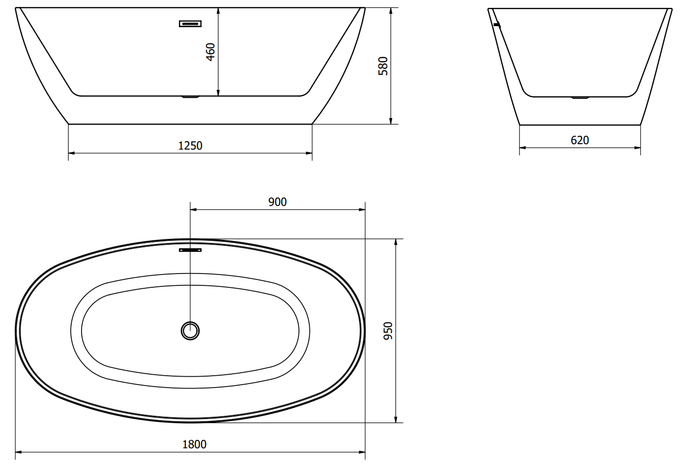 Mexen Eris самостоятелна вана 180 x 95 см, бяла, хромиран преливник - 53441809500-01
