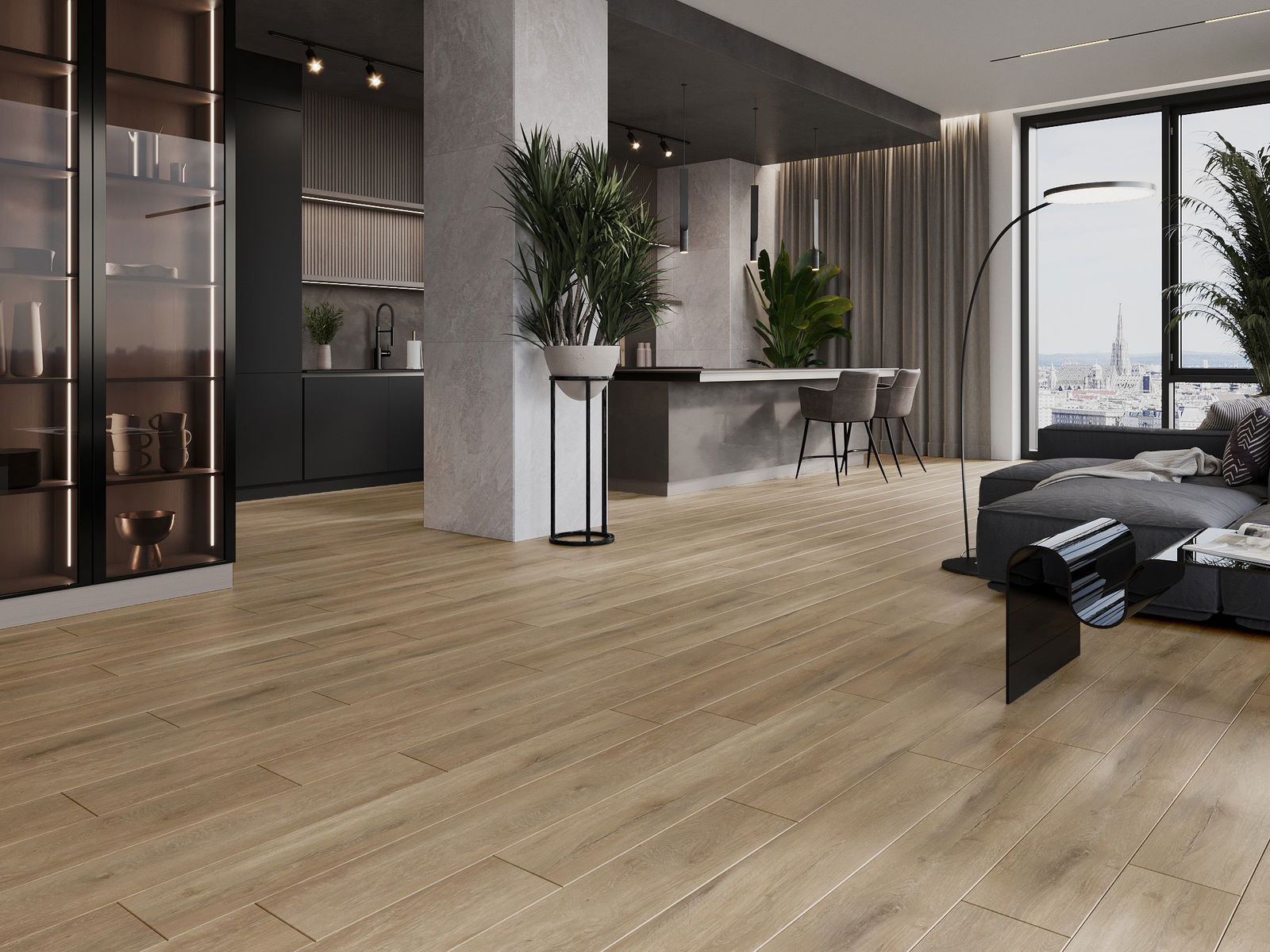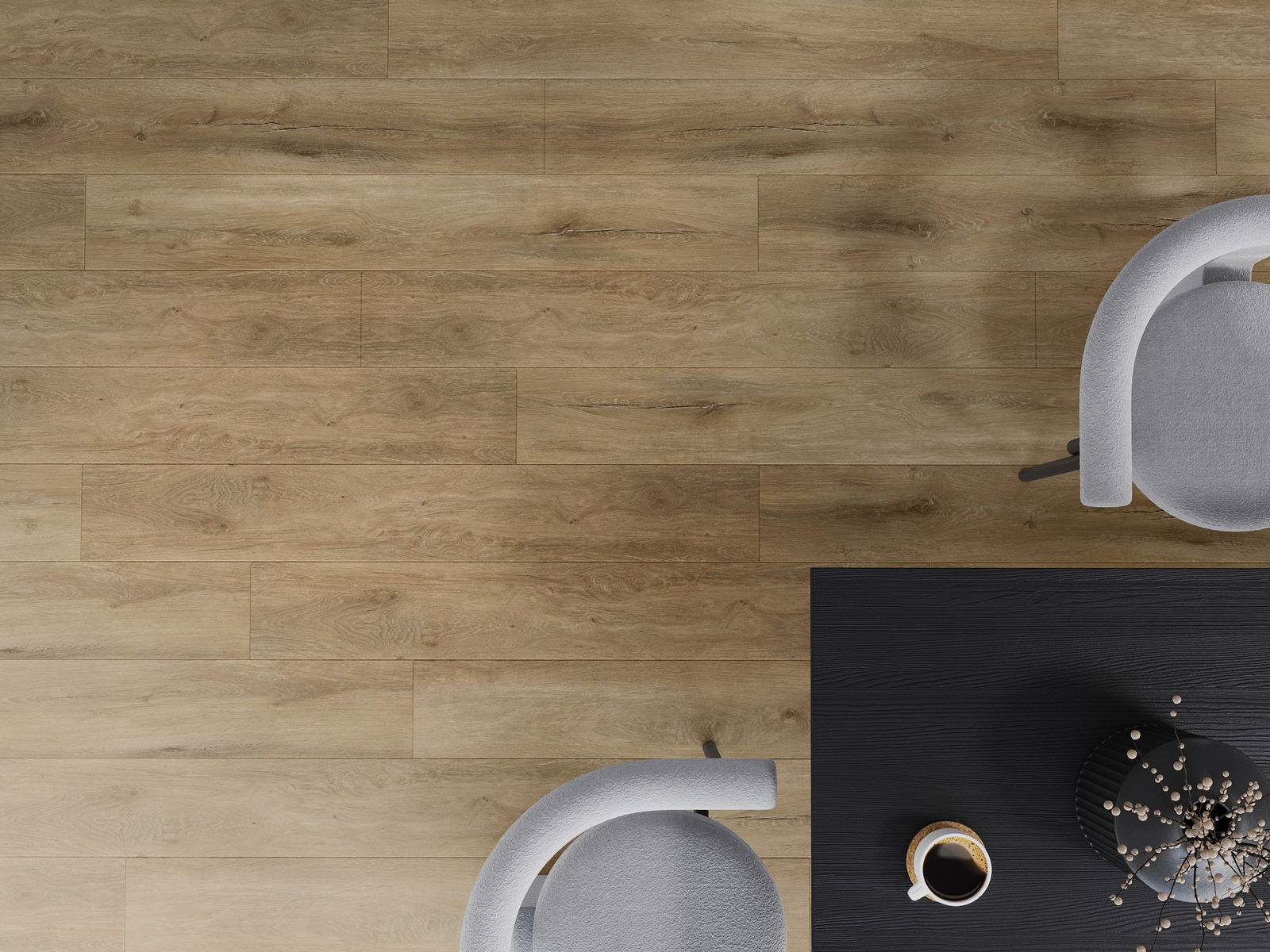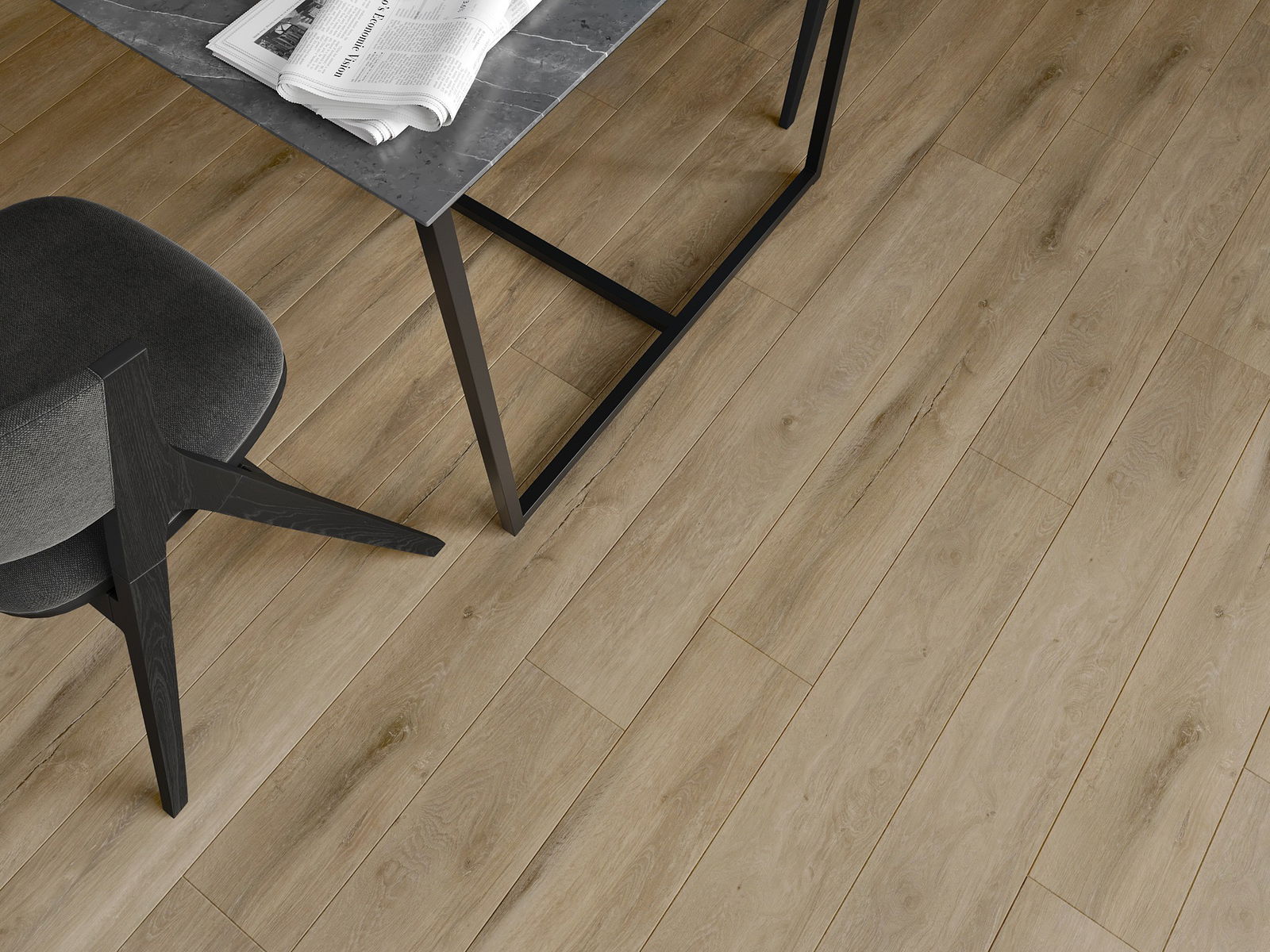 Панелите имат 4-странна фуга - всяка страна е обработена така, че при нареждане да се образува V-образно съединение. Този дизайн придава на пода по-изразена структура, което му добавя дълбочина и естетически характер. Този ефект е особено ценен в съвременните интериори, където детайлите подчертават уникалния изглед на вътрешността.