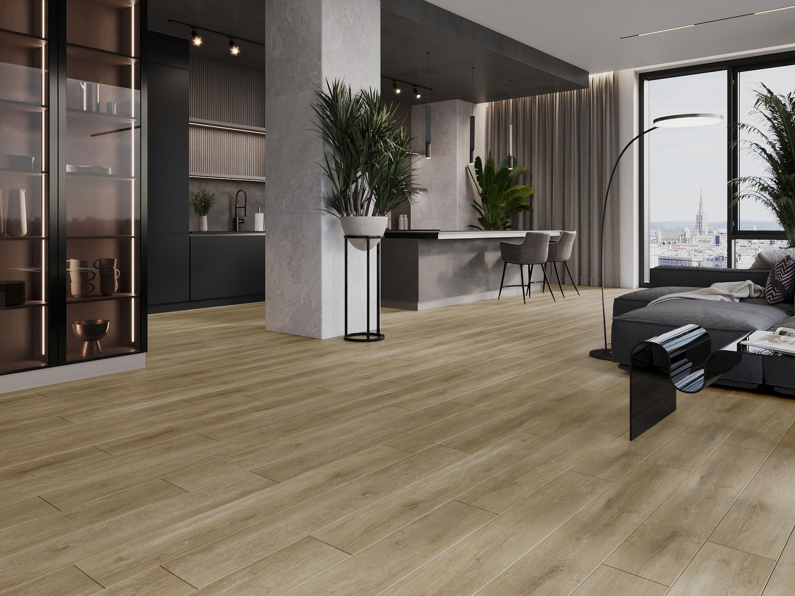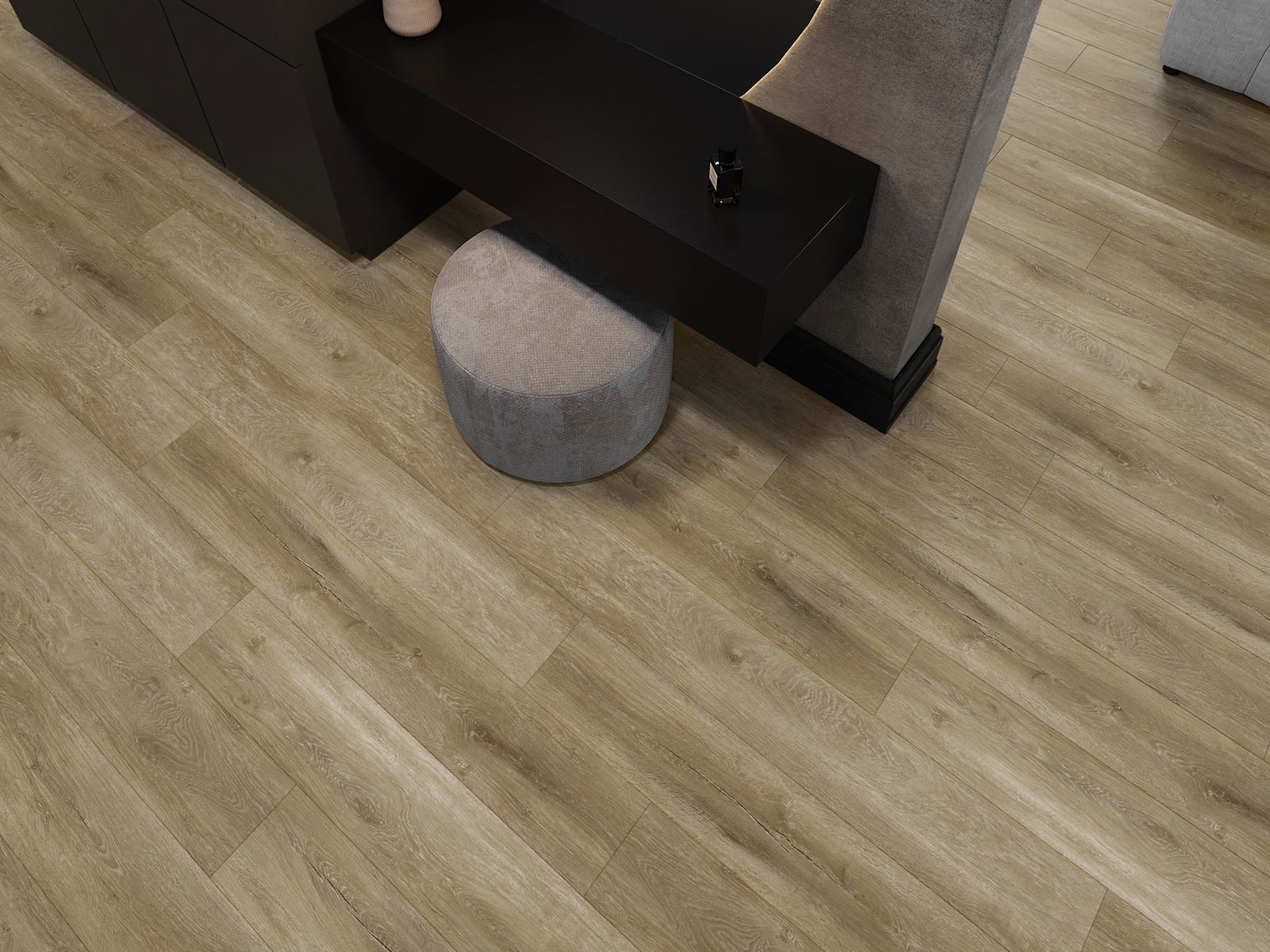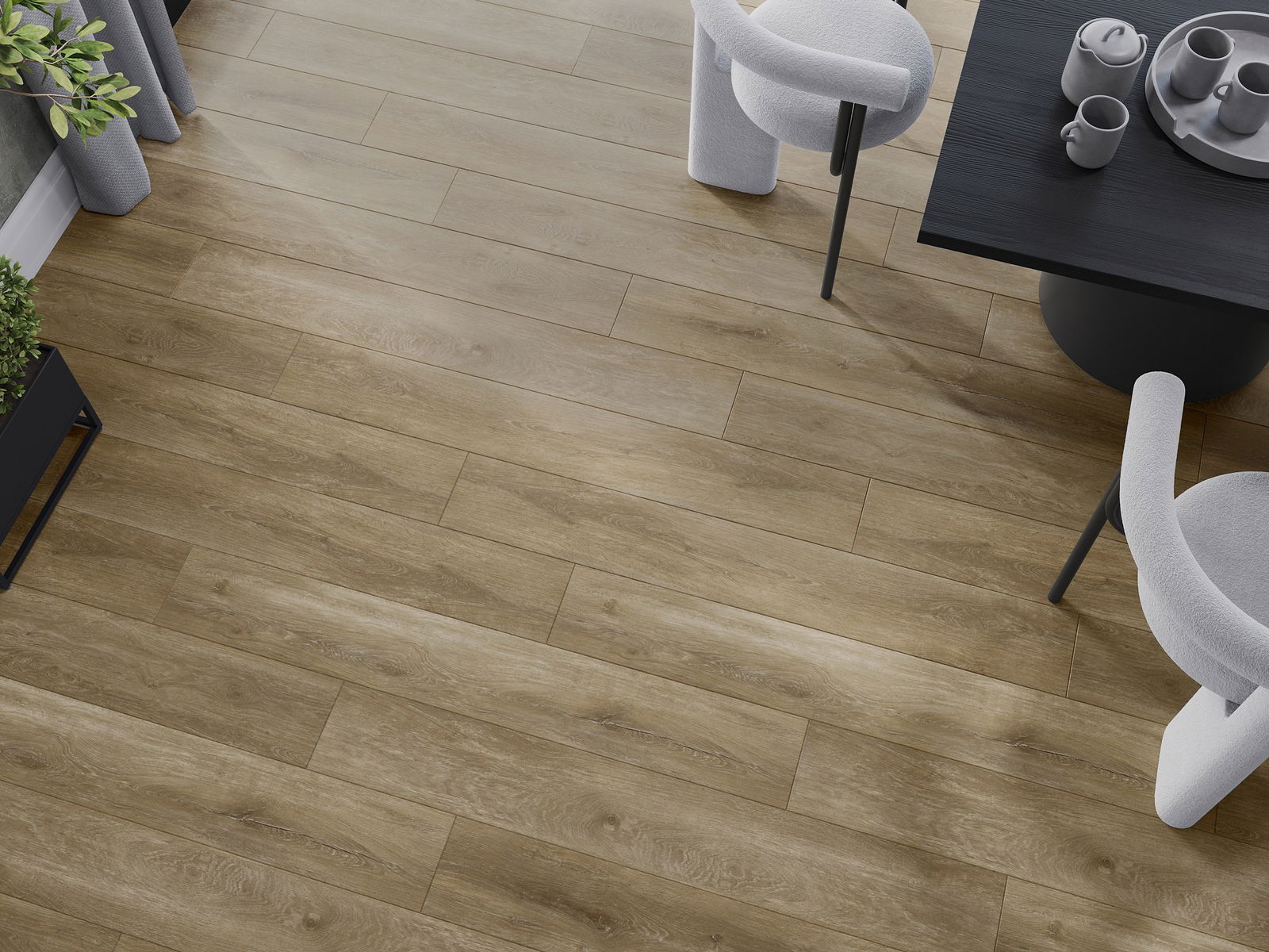 Панелите имат 4-странна фуга - всяка страна е обработена така, че при нареждане да се образува V-образно съединение. Този дизайн придава на пода по-изразена структура, което му добавя дълбочина и естетически характер. Този ефект е особено ценен в съвременните интериори, където детайлите подчертават уникалния изглед на вътрешността.