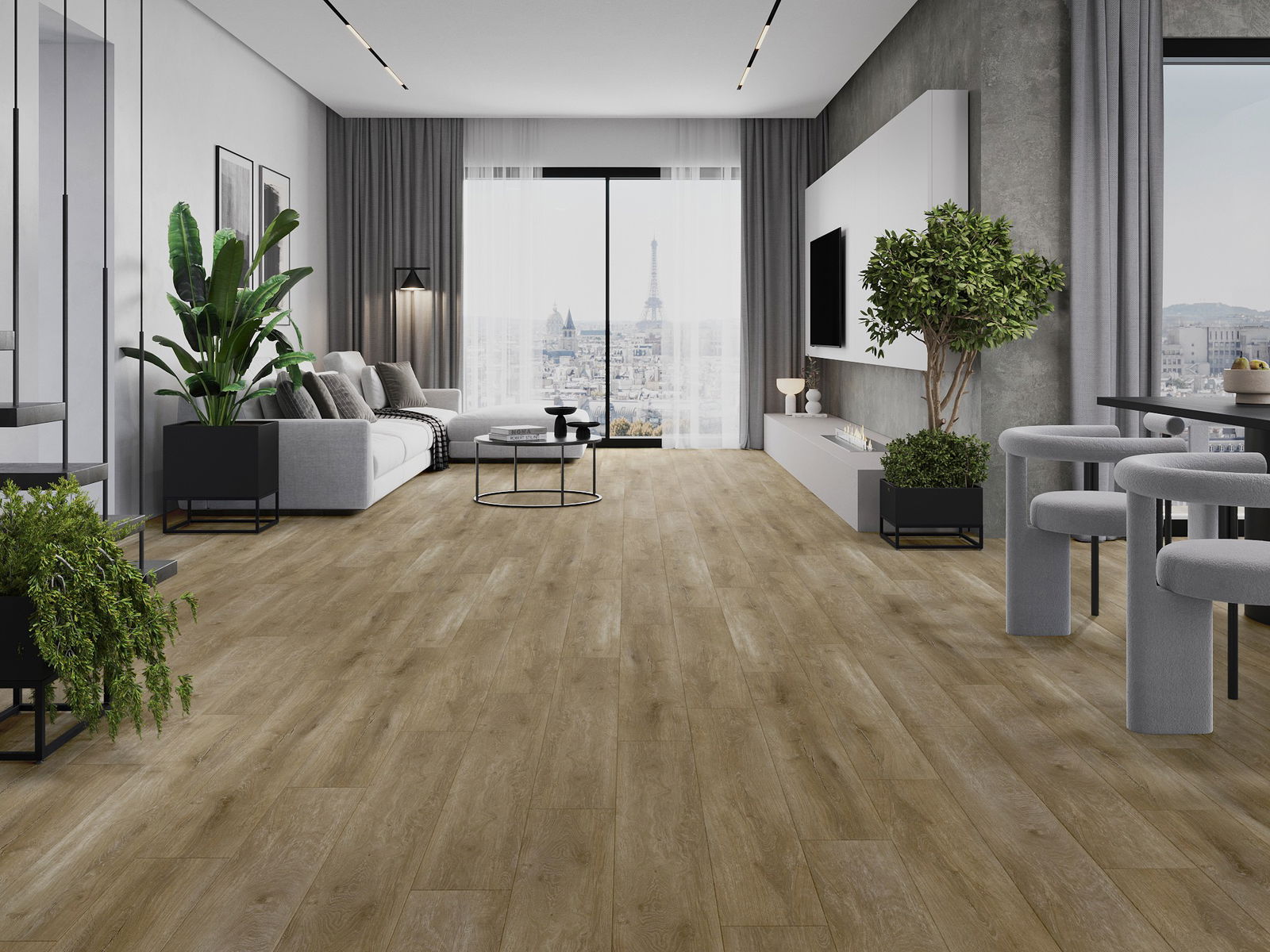 Панелът се отличава с фини жилки и релефи, които перфектно имитират избрания дървесен вид. Благодарение на този ефект, помещението придобива елегантен, но същевременно естествен и уютен характер.