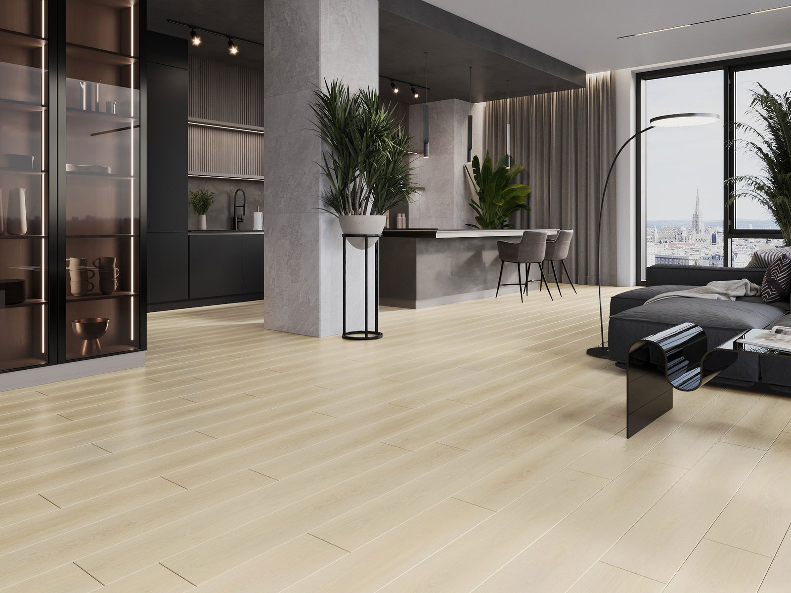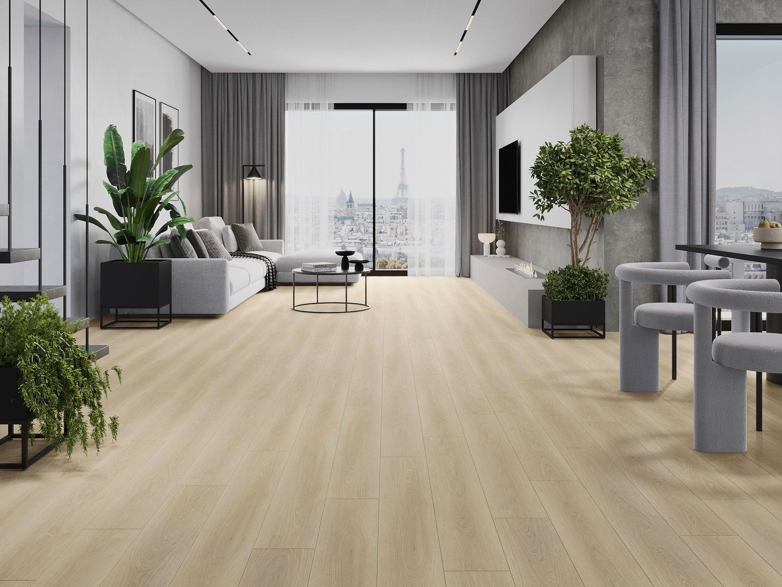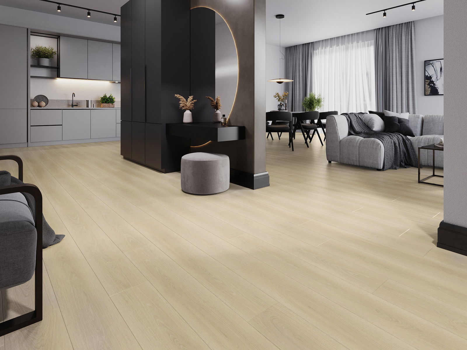 Панелите имат 4-странна фуга - всяка страна е обработена така, че при нареждане да се образува V-образно съединение. Този дизайн придава на пода по-изразена структура, което му добавя дълбочина и естетически характер. Този ефект е особено ценен в съвременните интериори, където детайлите подчертават уникалния изглед на вътрешността.