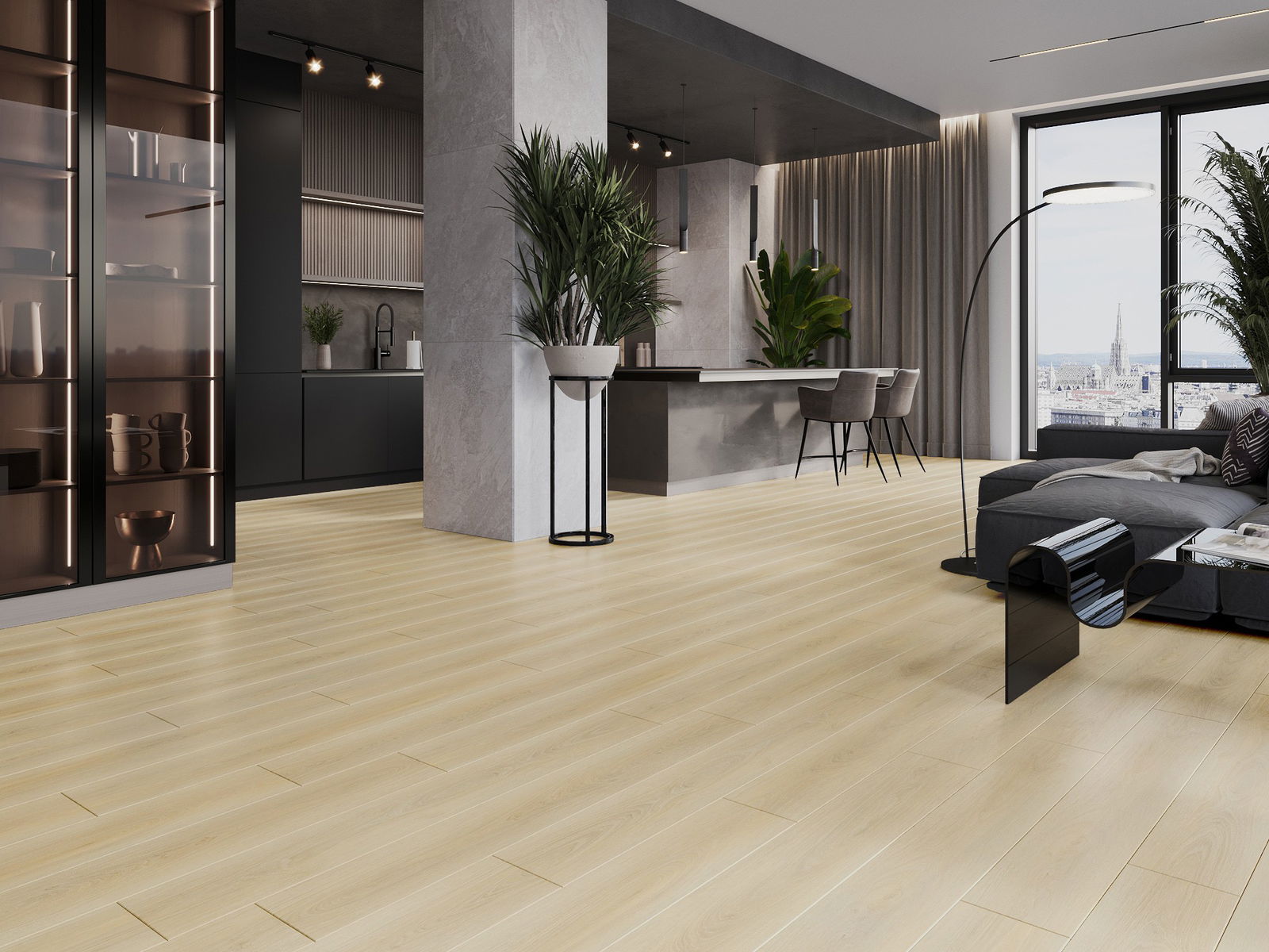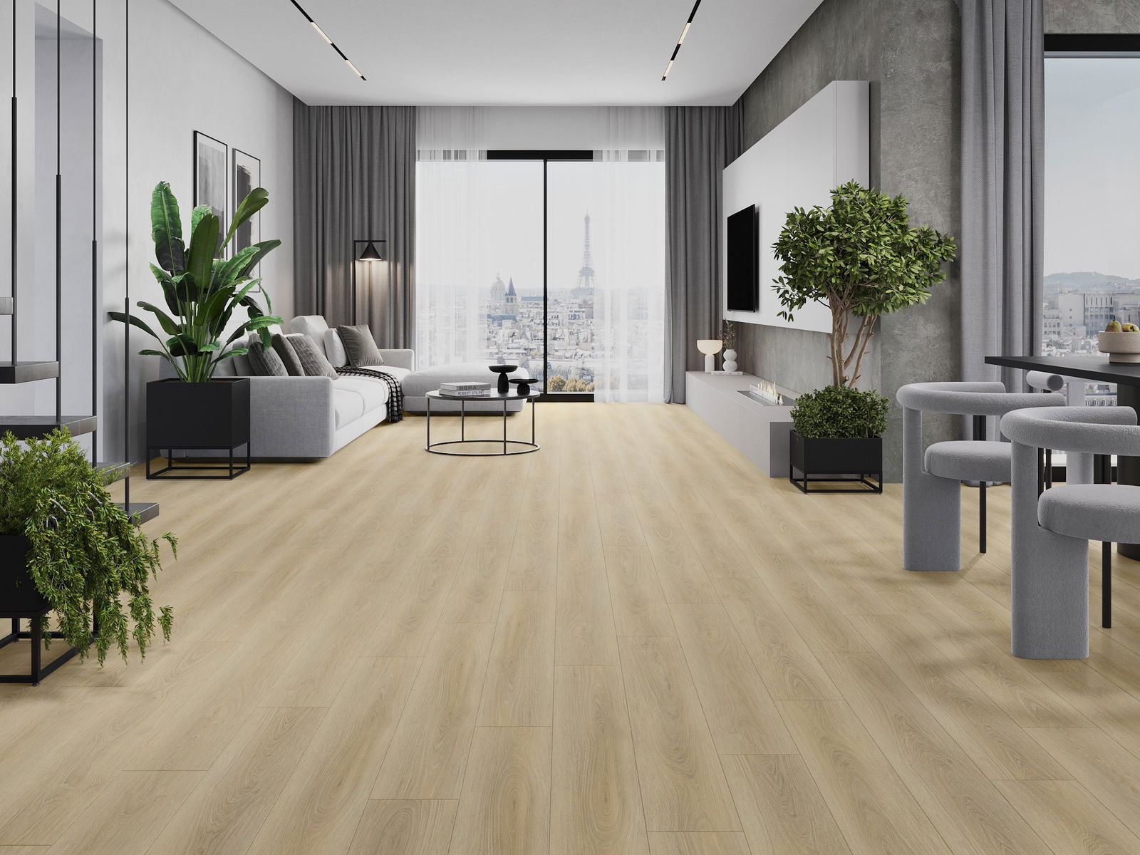Панелите имат 4-странна фуга - всяка страна е обработена така, че при нареждане да се образува V-образно съединение. Този дизайн придава на пода по-изразена структура, което му добавя дълбочина и естетически характер. Този ефект е особено ценен в съвременните интериори, където детайлите подчертават уникалния изглед на вътрешността.