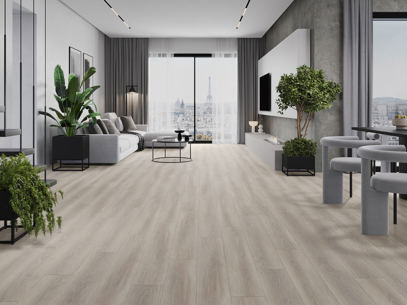 Панелите имат 4-странна фуга - всяка страна е обработена така, че при нареждане да се образува V-образно съединение. Този дизайн придава на пода по-изразена структура, което му добавя дълбочина и естетически характер. Този ефект е особено ценен в съвременните интериори, където детайлите подчертават уникалния изглед на вътрешността.