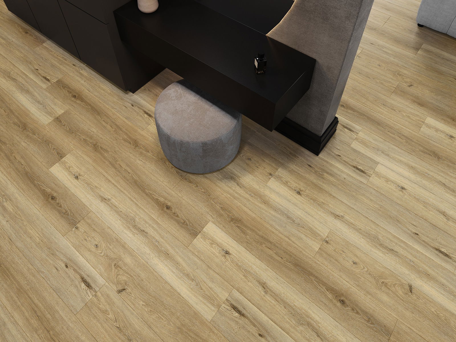 Панелите имат 4-странна фуга - всяка страна е обработена така, че при нареждане да се образува V-образно съединение. Този дизайн придава на пода по-изразена структура, което му добавя дълбочина и естетически характер. Този ефект е особено ценен в съвременните интериори, където детайлите подчертават уникалния изглед на вътрешността.